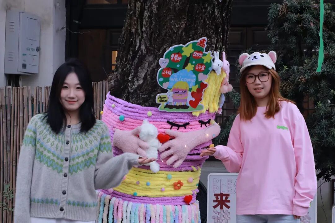 去年12月8日,仓城·郎园Bridge发出邀约后,上海立达学院的学生们积极响应,三五人一组,共为10棵树完成了编织任务。“我们并非凭空设计,而是提前开展了实地调研。”视觉传达设计专业大四学生孙天心介绍。为了让作品更具文化内涵,学生们深入老街弄堂,探寻历史脉络与生活痕迹,使设计真正植根于在地文化。