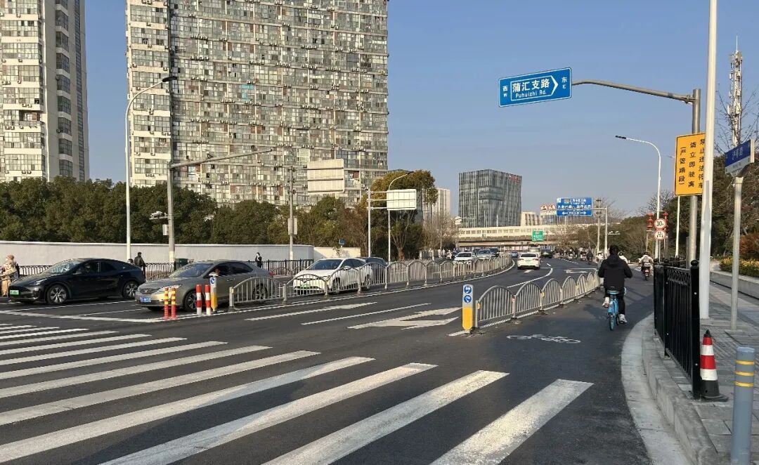 改造后的沪亭南路蒲汇路口焕然一新,交通流线清晰,车道划分合理,机非通行秩序井然,早晚高峰拥堵现象得到大幅缓解。