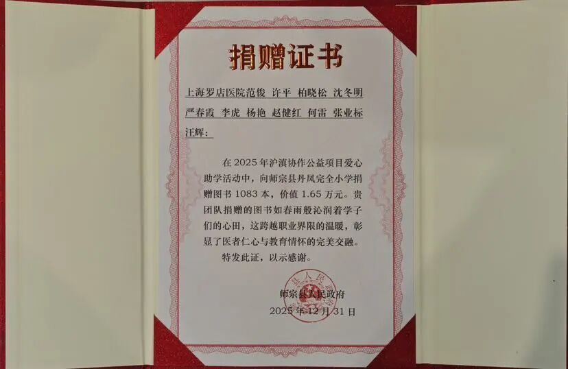 从临床诊疗到爱心捐赠,改变的是帮扶形式,不变的是罗医人的责任与担当。沪滇协作是跨越山海的温暖牵手,医院将继续以实际行动深化两地交流,既当好健康守护者,也做好爱心传递者,让医者的仁心不仅温暖患者的心田,更滋养孩子们的成长之路,为沪滇协作注入更多温情力量。