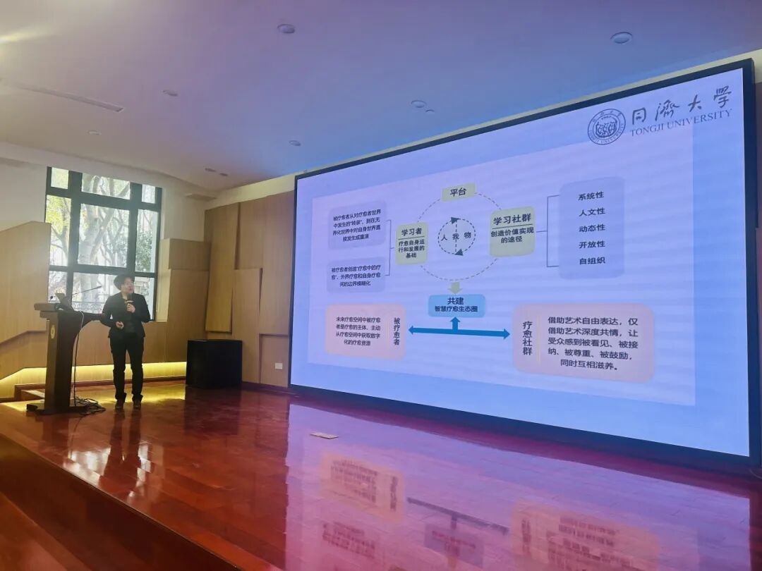 同济大学艺术与传媒学院党委副书记周彬教授在现场对这一概念进行了精准的学术界定:“医学艺术疗愈是一个跨界专业融合的概念,它整合医学、心理、教育与艺术,以艺术为媒介,以非语言形式服务大众身心健康。”他进一步强调了艺术疗愈的普世价值与生命关怀:“从出生到死亡,每个人都是艺术家,创作本身就是疗愈。”这揭示了艺术疗愈的真谛:唤醒内在生命力,以创造性活动转化消极体验。