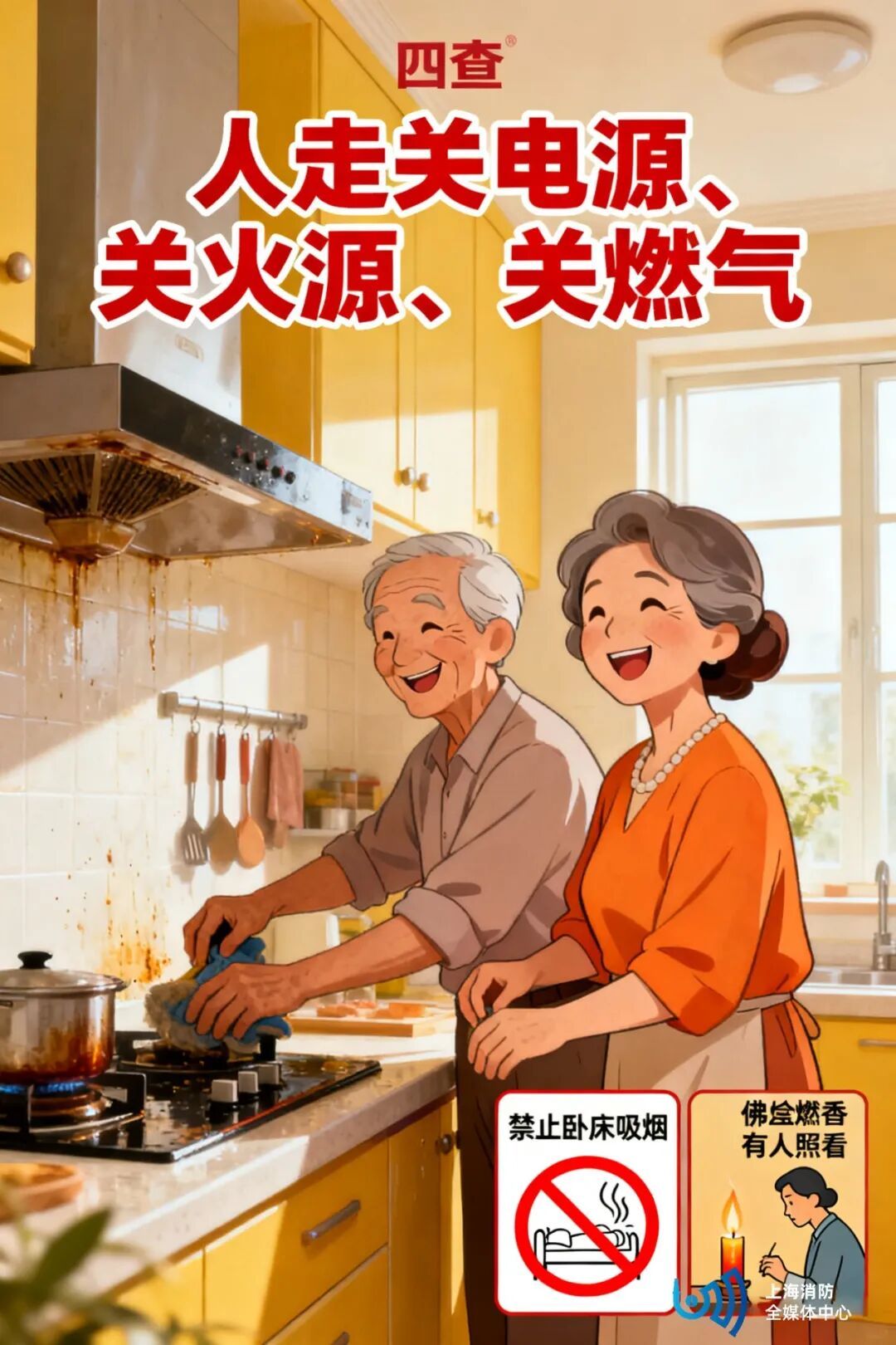 进入冬季,气温骤降,居民用火用电需求增加,火灾风险也随之上升。高龄独居、瘫痪卧床、失智失能等重点人群自我防护和逃生能力较弱,更需要全社会的关心与守护。崇明消防温馨提醒居民做好“四查”工作,共同为重点人群筑牢安全屏障。详见↓