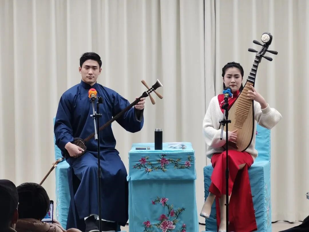 说、噱、弹、唱,演员们不仅展现着评弹艺术的魅力,也注重与观众的互动交流。针对社区观众以老年人为主的特点,演员们巧妙地将反诈宣传、安全提示等内容融入表演中,比如“捂牢皮夹子,小心退休金覅被骗!”这样接地气的台词,让表演更加创新的同时,也多了一份贴心的守护。