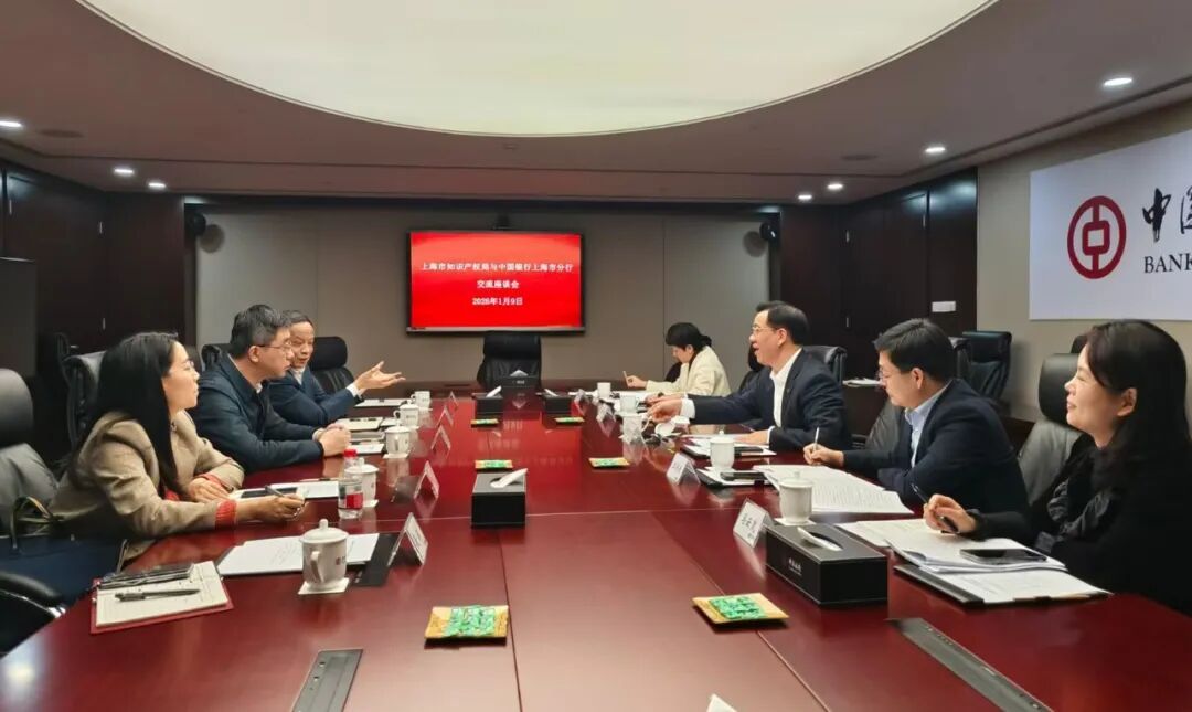 近日,市知识产权局与中国银行上海市分行举行座谈会,围绕知识产权质押融资和出海企业知识产权工作进行深入交流。市知识产权局副局长余晨、杨慧,中国银行上海市分行行长陈志能、资深客户经理杨军等参加。