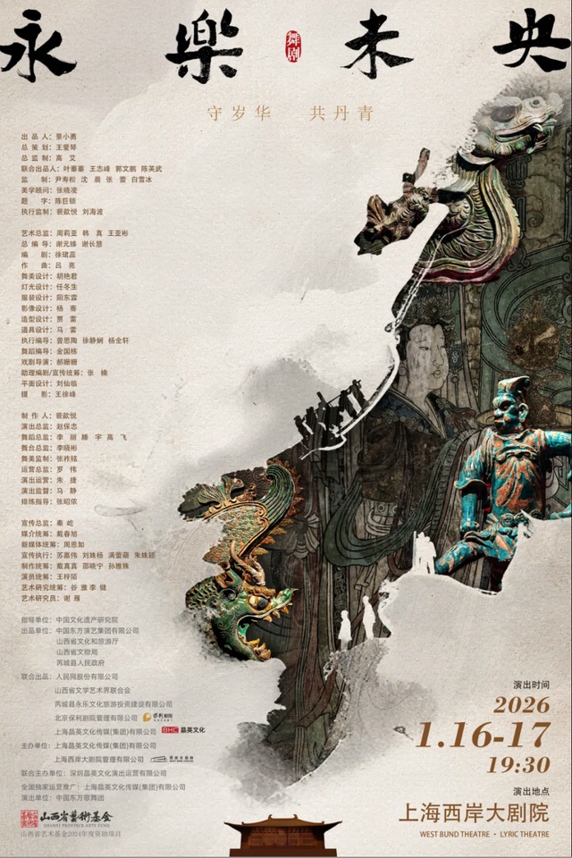 值得期待的是,上海站演出期间,“入画山西”主题壁画巡展将同步开展,动态舞姿与静态壁画相映成趣,让千年智慧再度澎湃。活动还向观众送出专属福利,凭巡演票根可免费兑换运城永乐宫、关帝庙等六大国宝景区电子推介票,实现“剧场赏舞+实地访古”的闭环体验。