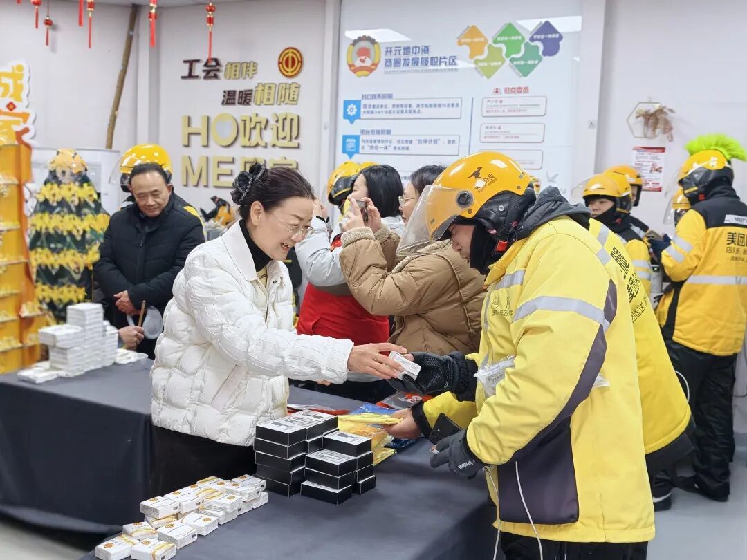保暖物资发放、写春联、“柿柿如意”手工制作……当天,形式丰富的暖“新”活动在全区各工会驿站同步开展。区总工会相关负责人介绍,本次冬送温暖活动累计服务户外职工和新就业形态劳动者超1000人次。