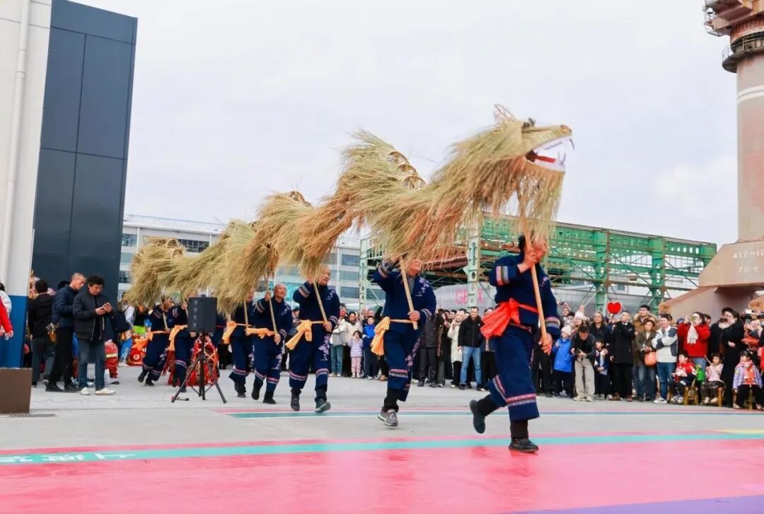 吕巷小白龙和松江叶榭舞草龙惊艳开场。灵动的白龙在舞者手中穿梭盘旋,尽显金山地域文化特色;舞草龙由10米长的竹篾与稻草扎制而成,“祷告”“行云”“滚龙”等招式一气呵成,古朴庄重又不失灵动。花篮马灯舞舞步轻盈,舞者手持花篮与马灯,身姿摇曳间满是江南水乡的温婉灵动;崇明山歌婉转悠扬,原生态的唱腔带着乡土的淳朴气息,诉说着江南的人文故事;月浦舞狮压轴登场,雄狮腾跃、摇头摆尾,动作刚劲有力,寓意着瑞气临门、吉祥如意,每一个招式都引得现场掌声雷动、喝彩连连。