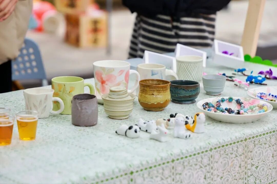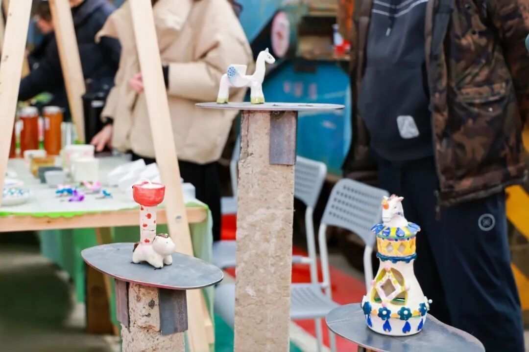 马门村位于嘉定区外冈镇,是沪派江南空间营造的特色风貌村落。此次复兴岛市集的陶艺产品均出自驻村艺术家之手,涵盖咖啡杯、花瓶、手绘瓷盘等兼具实用性与艺术性的手作器物,每一件都藏着手作温度与创作巧思。搭配村内特色手作咖啡,选用陶艺展品作为杯具,让市民在醇香中触摸陶艺肌理,沉浸式感受“艺术即日常”的理念。