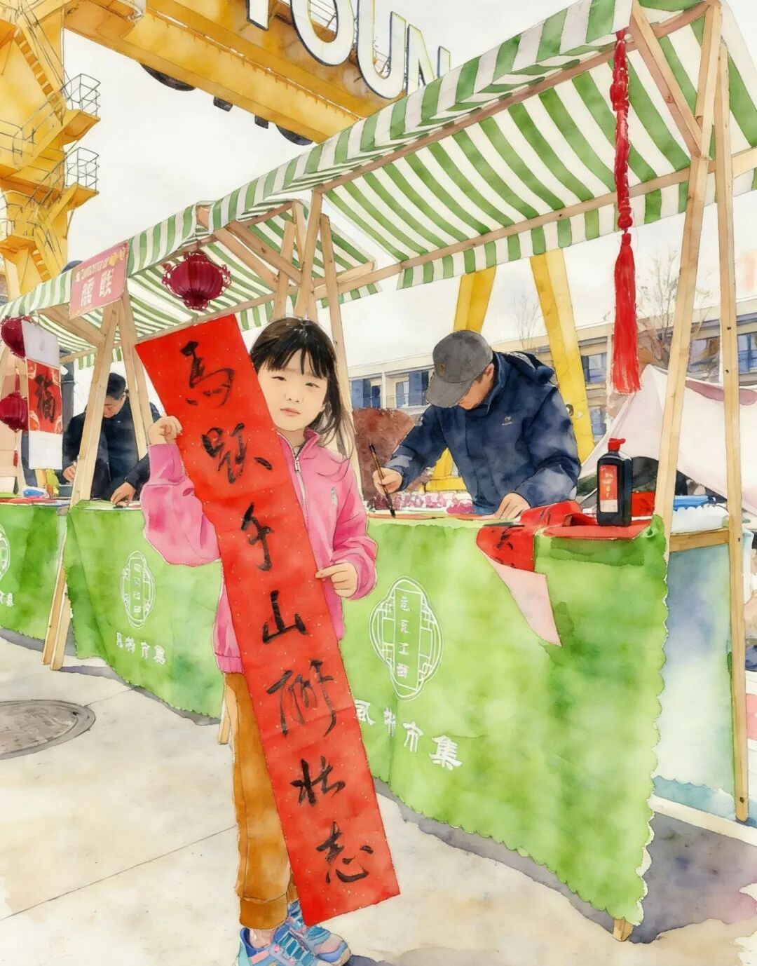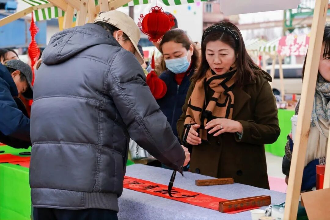 黄桥村特色楹联摊位前更是排起了长队,书法家们挥毫泼墨,笔走龙蛇间,一幅幅寓意吉祥的春联跃然纸上,“马跃青山迎福至,桥连绿水送春来”等佳句饱含美好期许,墨香混着年味,为市集添足了喜庆氛围。
