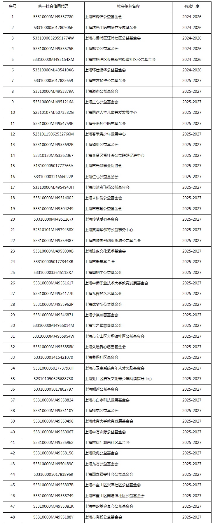 上海市2024年度—2026年度(第五批)和2025年度—2027年度(第三批)符合公益性捐赠税前扣除资格的公益性社会组织名单