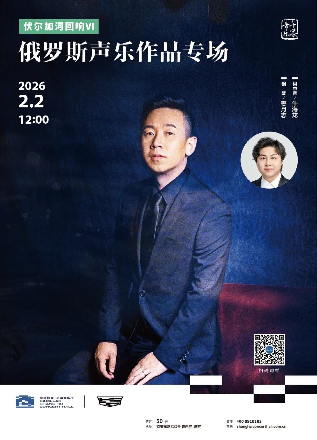 2月2日伏尔加河回响Ⅵ——俄罗斯声乐作品专场,作为年度系列“伏尔加河回响”第六场,凝练俄罗斯声乐黄金时代精髓。曲目涵盖艺术歌曲、歌剧咏叹调与经典民歌,多首植根民间的作品,尽显伏尔加河流域原始真挚的情感,还原俄罗斯声乐艺术的独特韵味。