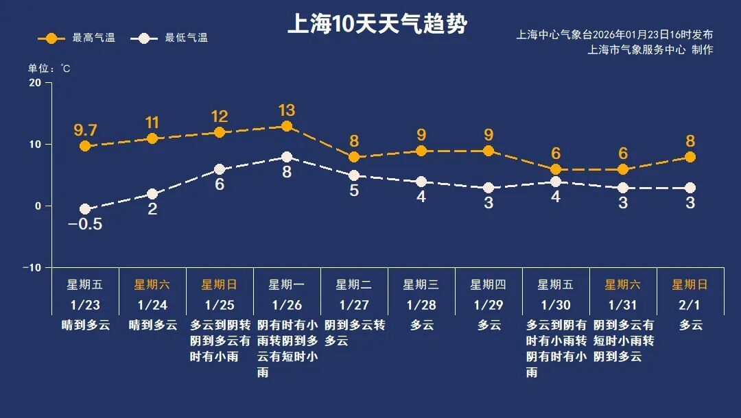 晴空辐射降温作用下,今晨全市最低气温仍在冰点以下,宝山、崇明和浦东三区气温刷出入冬新低。白天阳光上线,气温快速回升,全市最高气温普遍来到8~11℃之间,市区徐家汇站为9.7℃。白天的寒意稍减。