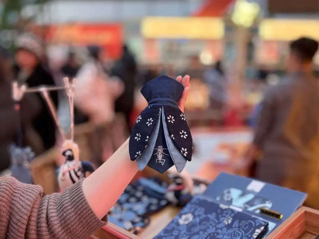 而在月亮湾,“蔚冉生长月亮湾花市新春集”也呈现出浓浓的年俗仪式感。银柳福桶、蝴蝶兰与大花蕙兰等寓意吉祥的年宵花争奇斗艳,苗绣、宋锦、糖画与棉花糖等非遗技艺及特色小吃摊位前也十分热闹。