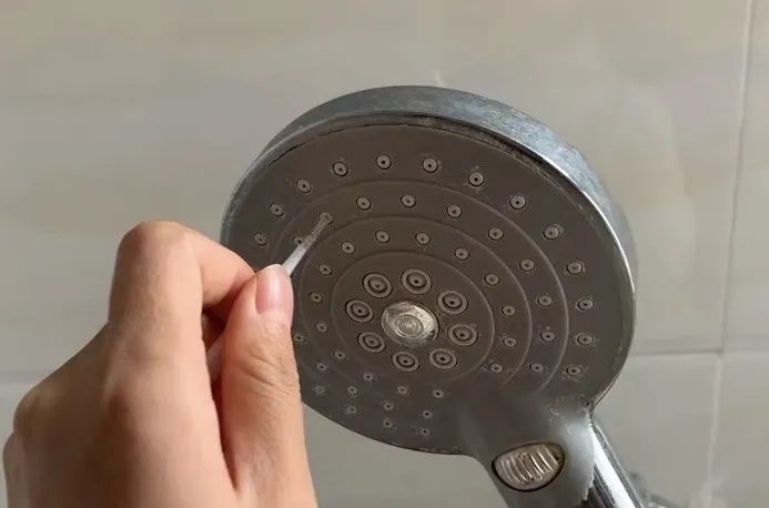 ■将吸管刷插入花洒孔,来回摩擦进行清洁;