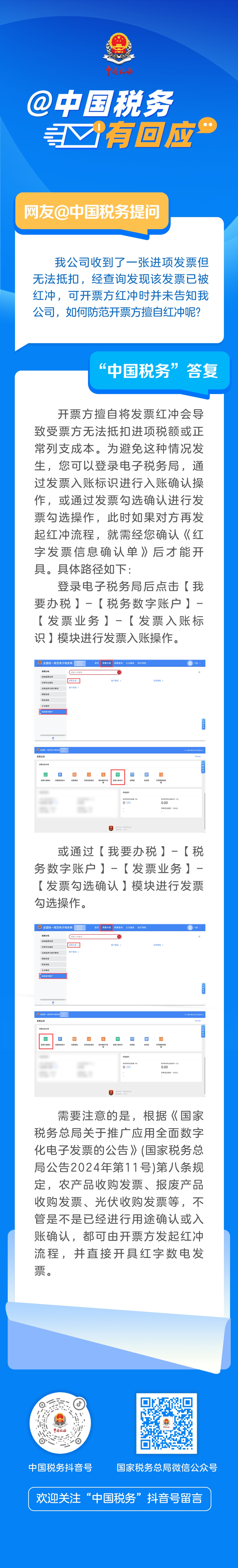有网友问:“我公司收到了一张进项发票但无法抵扣,经查询发现该发票已被红冲,可开票方红冲时并未告知我公司,如何防范开票方擅自红冲呢?”一起来看看回复吧↓