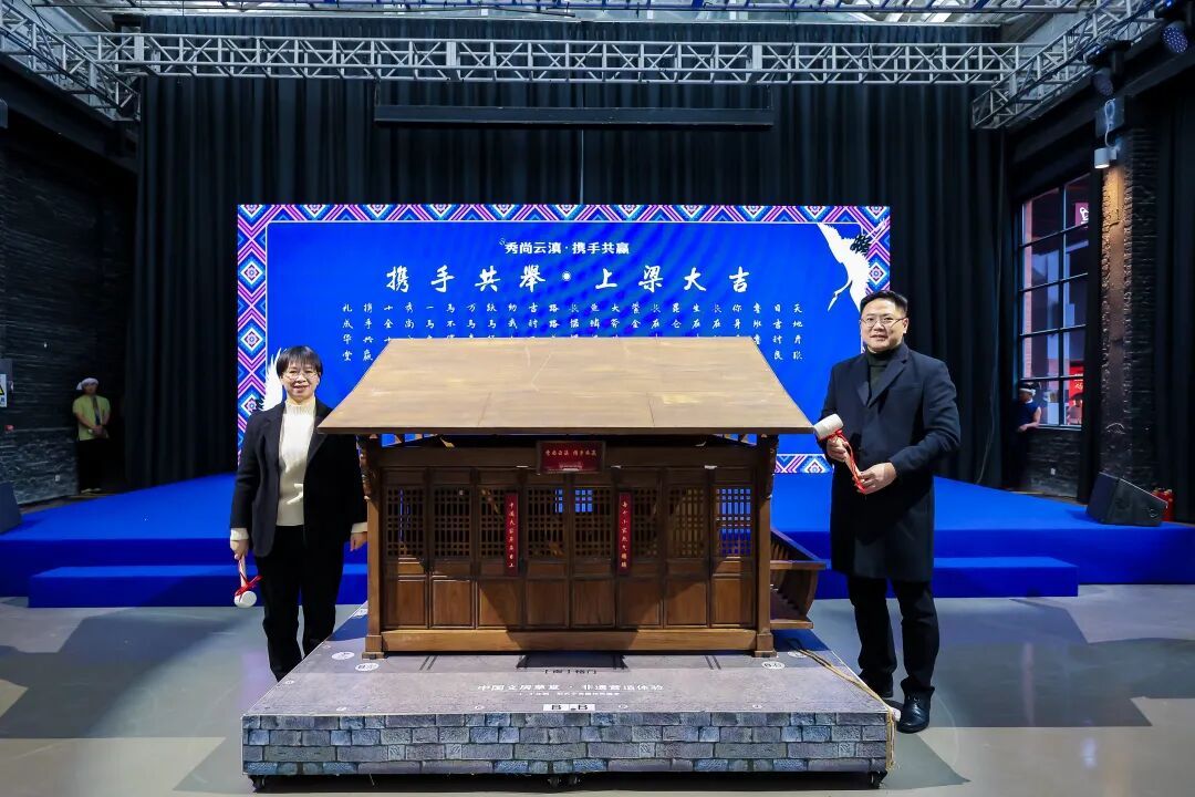 活动中,与会嘉宾参与云南古建非遗“上梁仪式”,搭配喜庆的“上梁喜歌”,以沉浸式文化互动为这场沪滇双向奔赴之旅拉开序幕。