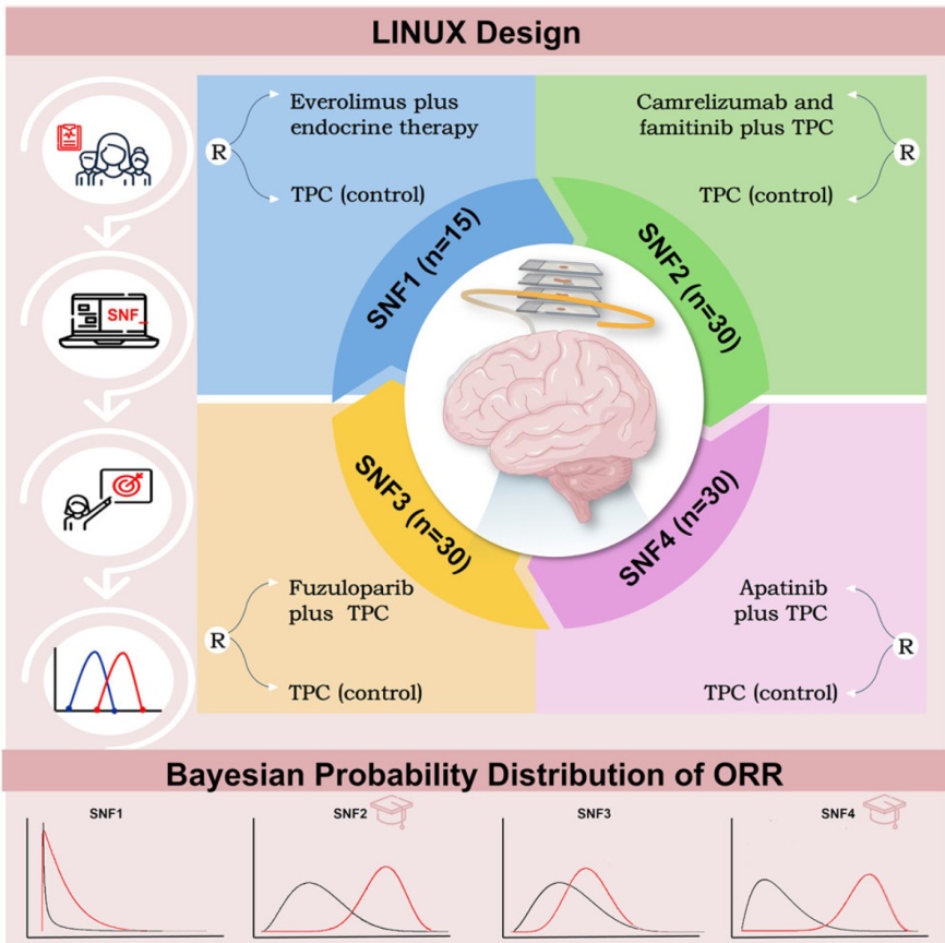 2025年12月4日,复旦大学附属肿瘤医院乳腺肿瘤中心主任兼多学科综合诊治团队首席专家邵志敏教授领衔团队,在国际顶级期刊Cancer Cell发布一项名为LINUX的多中心、随机、对照Ⅱ期平台临床试验研究成果。该研究成果聚焦晚期腔面型乳腺癌患者耐药后的治疗困局,依托乳腺癌精准治疗协作组(BCTOP),基于“复旦腔面型乳腺癌四分型”模型,通过对多组学数据深度挖掘,揭示疾病的内在异质性,建立起可供临床转化的“复旦腔面型乳腺癌四分型”分子分型系统。同时首次运用AI模型驱动临床研究,找到免疫调节型和RTK驱动型的腔面型乳腺癌患者精准治疗靶点,通过匹配相应靶向药物,疗效提升2-3倍。
