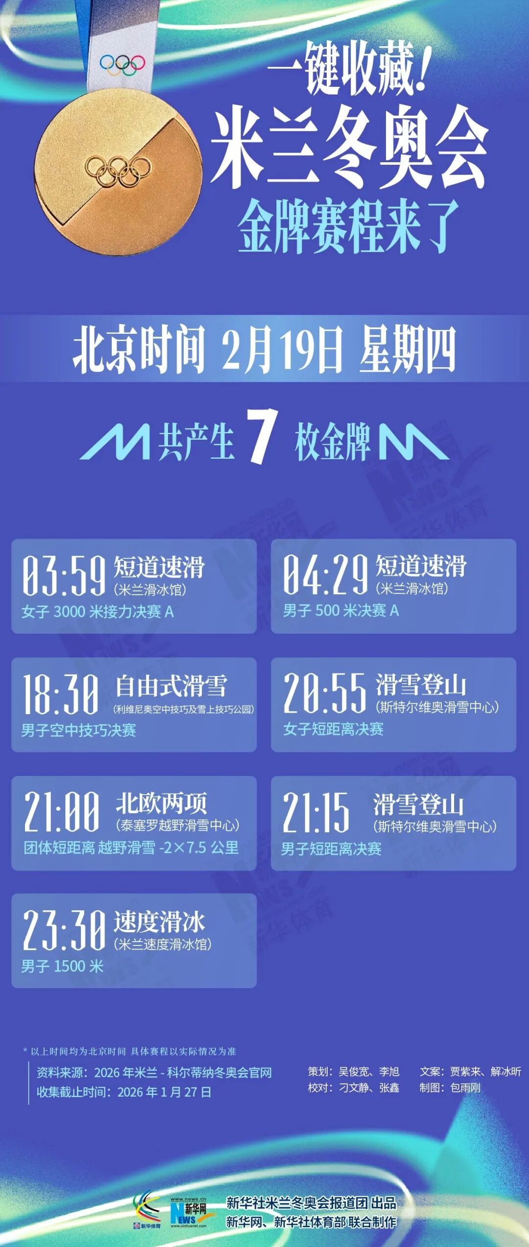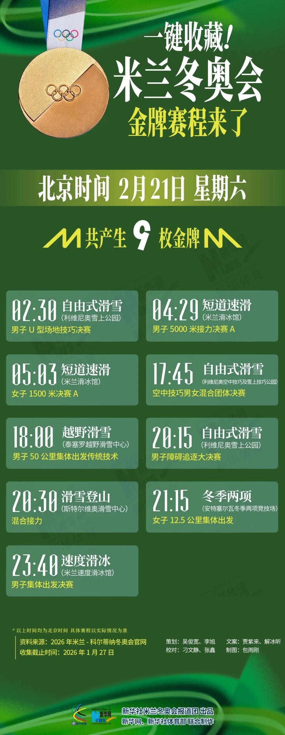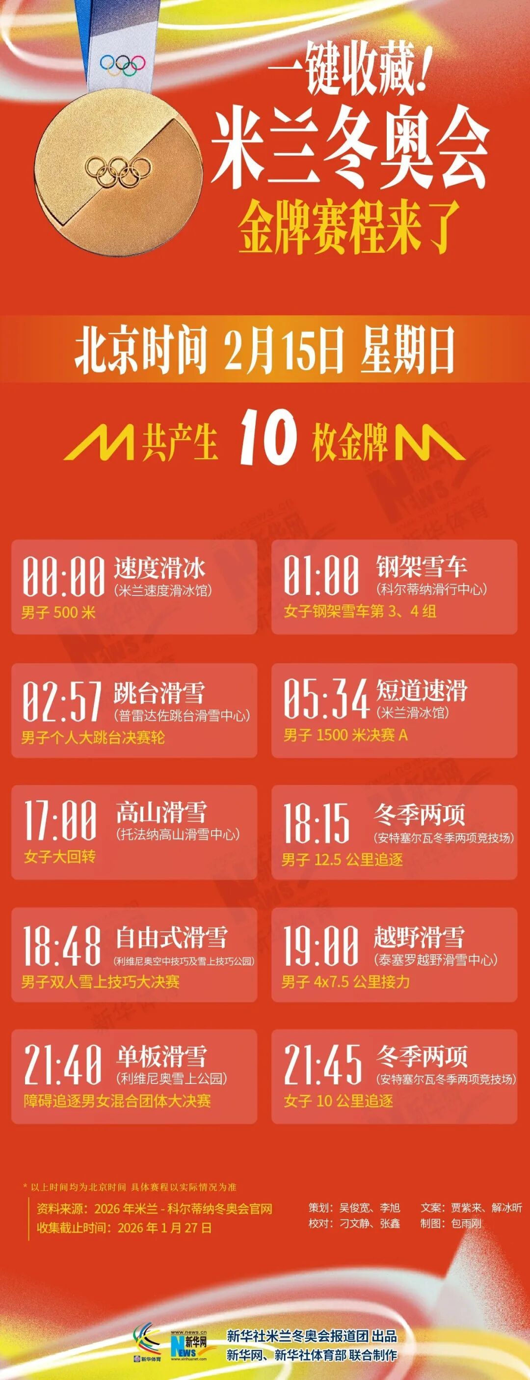 市体育局介绍,米兰冬奥会战幕将启,冰雪健儿已集结完毕,蓄势待发。不想错过每一个“金”彩夺目的巅峰对决?快收藏这份米兰冬奥会金牌赛程,助你精准观赛!详见↓