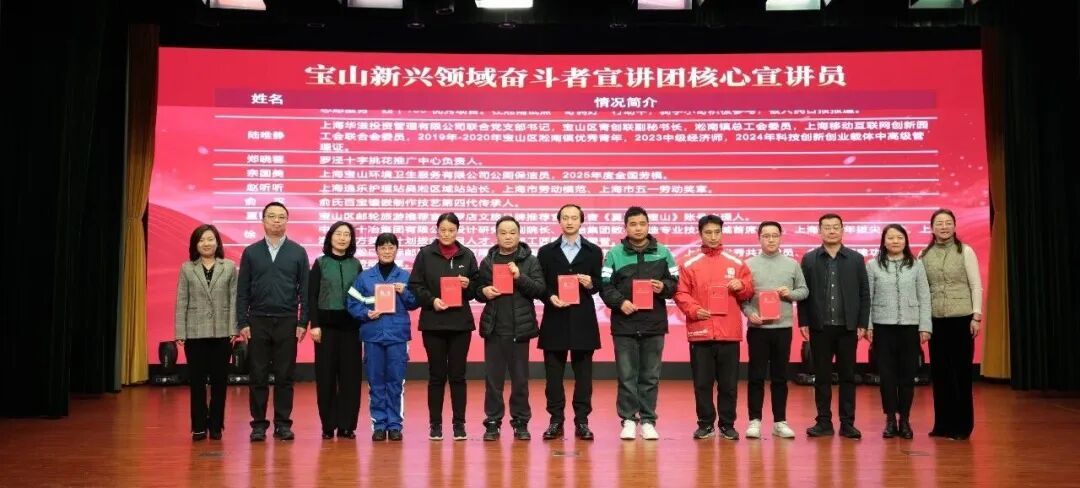 从产业前沿到基层一线,从科技创新到民生守护,这场宣讲既是一次奋斗故事的集中展示,更是一次初心使命的精神共鸣。未来,宝山将以此次活动为契机,持续搭建新兴领域奋斗者交流平台,让更多一线声音传递信仰力量,让更多实干故事照亮前行之路,为宝山高质量发展凝聚起同心同向、勇毅前行的强大合力。