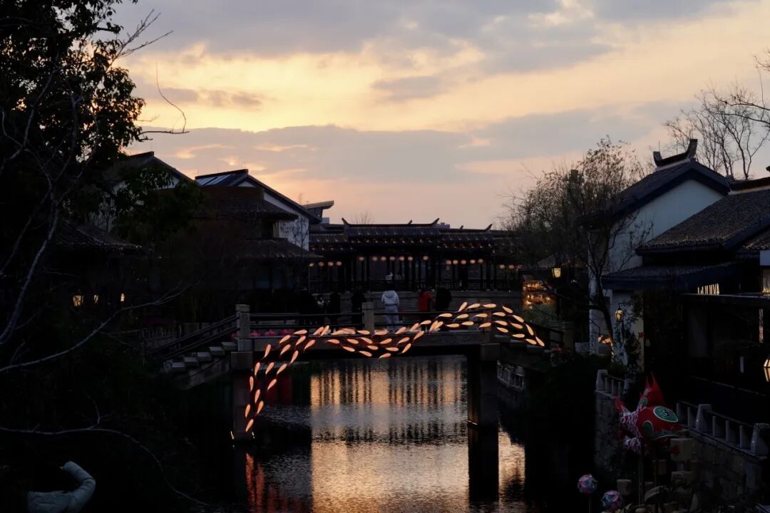 当夜色为蟠龙新天地披上朦胧的光衣,一场专属于江南的新春仪式正在这里悄然开启——非遗灯彩点亮街巷,龙马庙会唤醒年味,古镇的“老底子”里,正生长出兼具新意与传统的中国年。在灯火中、双手间、舌尖上——一场融合传统韵味与当代美学的江南新春盛宴,正等你来沉浸体验。 江南灯会:一街一灯,皆是传承 漫步蟠龙,仿佛走入流动的光影诗篇。17处赏灯点位悄然点亮,勾勒出小桥流水与巷弄屋宇的温柔轮廓。其中最动人的,当属五大非遗灯彩。 手作彩灯玲珑婉约,灯色灵感取自蟠龙落日时分,匠人以竹为骨,一笔一笔染出暖金、绯红与暮紫的渐变;无骨花灯通体全靠纸张的剪刻与拼贴而成,灯面镂刻着细腻繁复的缠枝纹与花卉图样,光影柔和如月华流淌;油纸灯笼上的祝福语和手绘图案喜庆洋洋,灯亮时字画映光,祝福也随之漾开;丝竹灯笼以丝丝细竹编织而成,轻摇江南雅韵;非遗鱼灯寄托着“年年有余”的美好祝福,灵动如游,仿佛随时要跃入夜色。 左右滑动查看更多 每一盏灯背后,都是手艺人对传统的坚守,也是对当代审美的创新融合。游客举起手机,镜头里是灯,也是穿越时光而来的年意。 龙马庙会:手作之间,年味可触 如果说灯会是视觉的盛宴,那龙马庙会便是沉浸式的年味工坊。这里汇聚着亲切的烟火气与手心温度:现场可体验手写春联,红纸墨香,一笔一画写下祝福;版画拓印摊位前,大人孩子亲手拓出吉祥图案,将传统年画带回家。更有糖人、剪纸、草编等穿插其间,是真正可触可品的非遗,让人们零距离感受到中华节庆文化的深厚积淀。 市集里热气袅袅,传统小吃与地方风味交织飘香:手打年糕软糯、甑糕温甜、龙须酥绵密……一路走一路尝,年味从舌尖一直暖到心头。 月上柳梢头,相约蟠龙见。穿行在古巷中,灯影映水、人声绕梁,年味悄然漫上心头。老宅檐下,时尚灯组与斑驳砖墙相映;石板路边,非遗韵味与新式美学和谐共生。既可以倚着百年石桥赏灯,转身走进咖啡馆小坐;也可以在庙会体验拓印,再挑一件文创好物带走。年,在此既是传承,也是焕新。马年新春,不必远行,就来蟠龙,走一段有光的夜,赶一场有温度的集,在古镇新韵里找回我们期盼的团圆年。