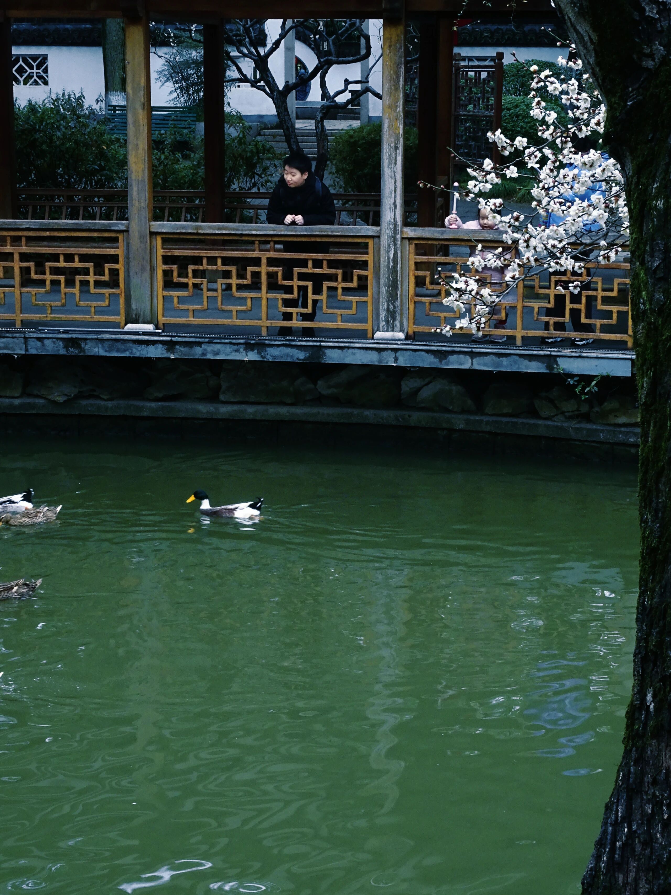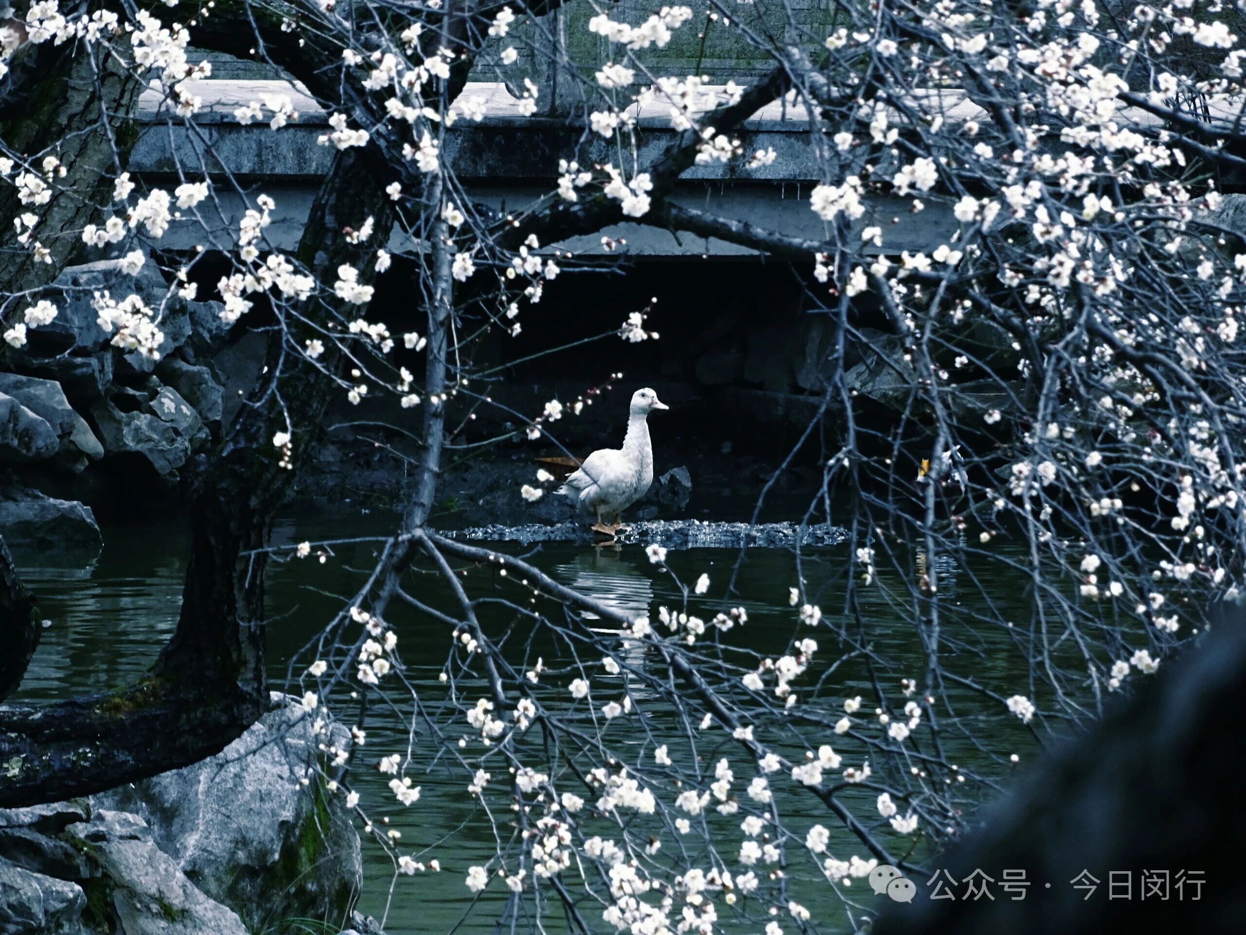 你知道吗?莘庄公园的第一缕梅香已悄然漫过湖面,碧绿的湖面被绿头鸭划开一道“人”字形的水痕,映入画面的还有湖边的梅花。