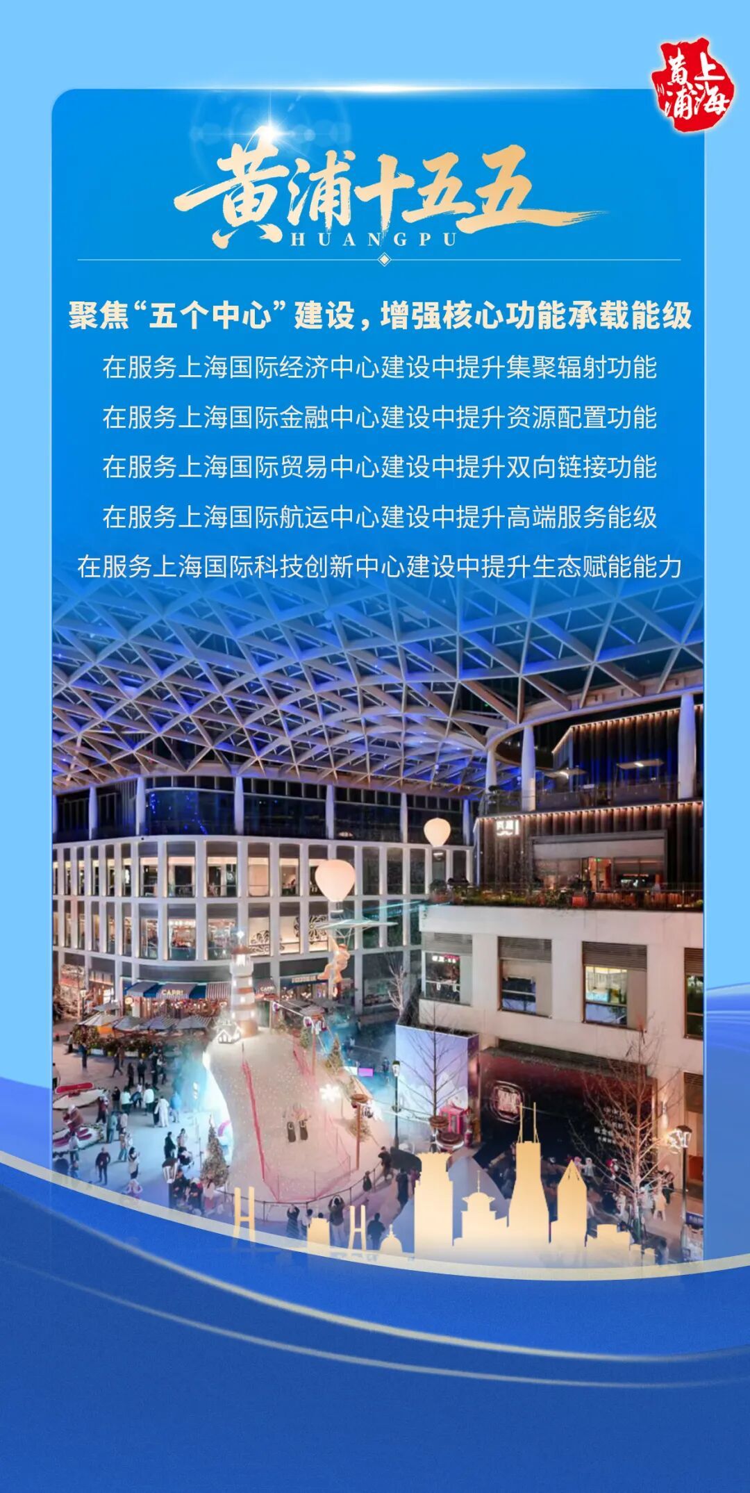 未来五年黄浦将如何进阶?十张“黄浦十五五”主题海报正式揭晓答案!从升级“世界会客厅”功能,到打造高能级产业集群,从推进历史风貌区更新,到提升民生福祉温度,黄浦区以“强化核心功能、塑造核心竞争力”为目标,勾勒出一幅兼具硬核实力与人文温度的卓越城区发展蓝图,邀