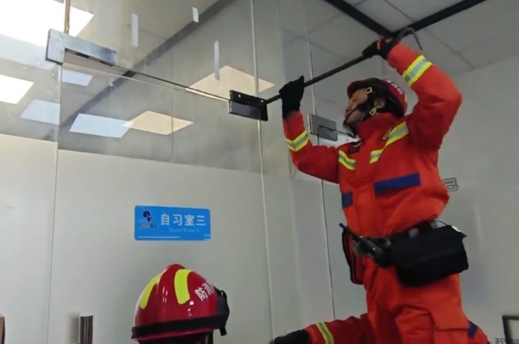 1月30日中午,松江区一培训机构内发生险情,一名小男孩玩耍时左臂不慎卡进玻璃门与门框缝隙,仓桥消防救援站消防员火速到场,经3分钟精准施救,成功将孩子救出并送医。