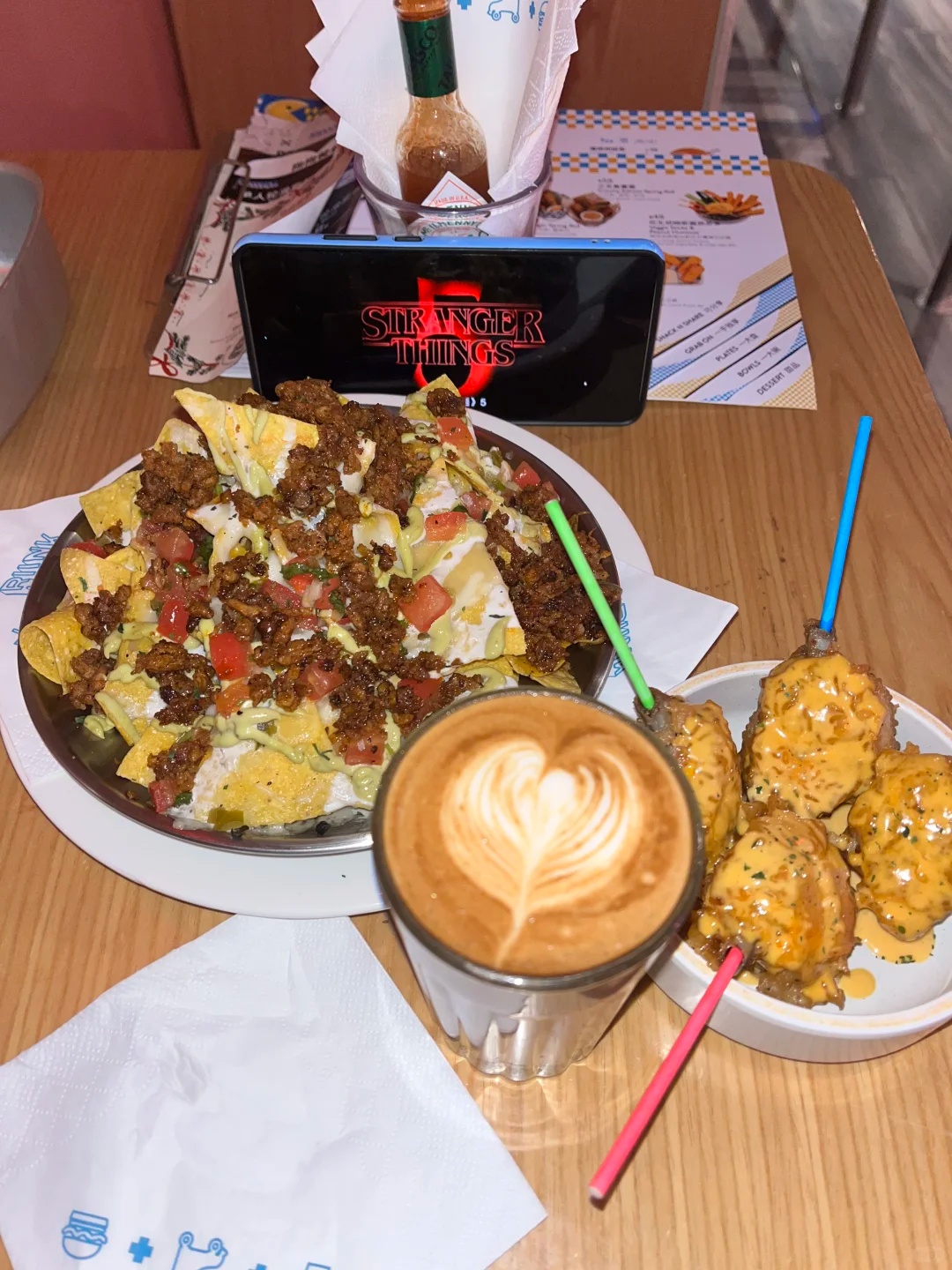 餐厅内超级鸡翅、薯条、