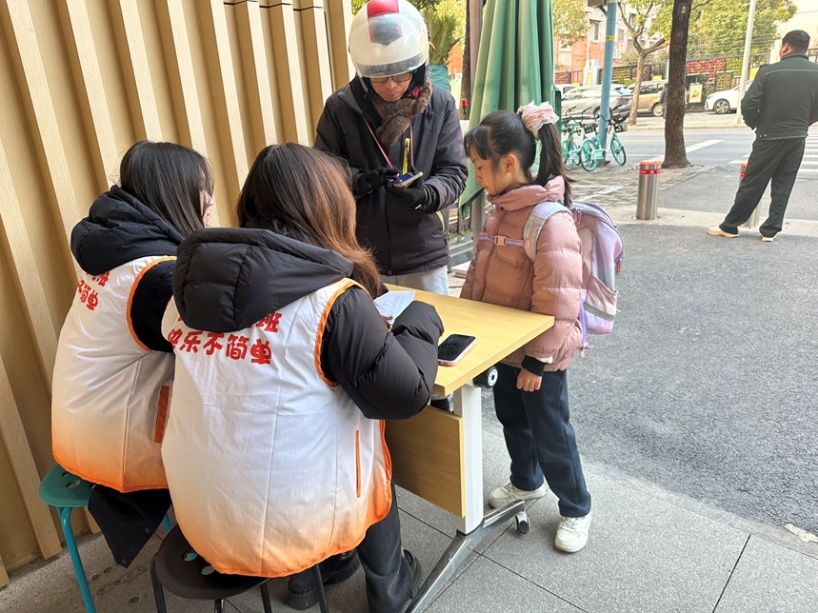 上午8点,班主任和志愿者们早早守候在校门口,准时迎接孩子们的到来。志愿者大哥哥大姐姐们耐心地为每一位小朋友测量体温,仔细登记签到信息,并一路护送他们走进教室。高效有序的流程背后是规范管理的体现,更是志愿者们用心的付出。