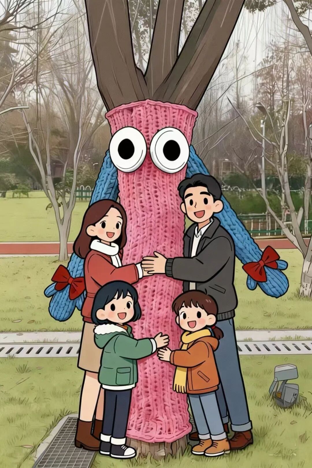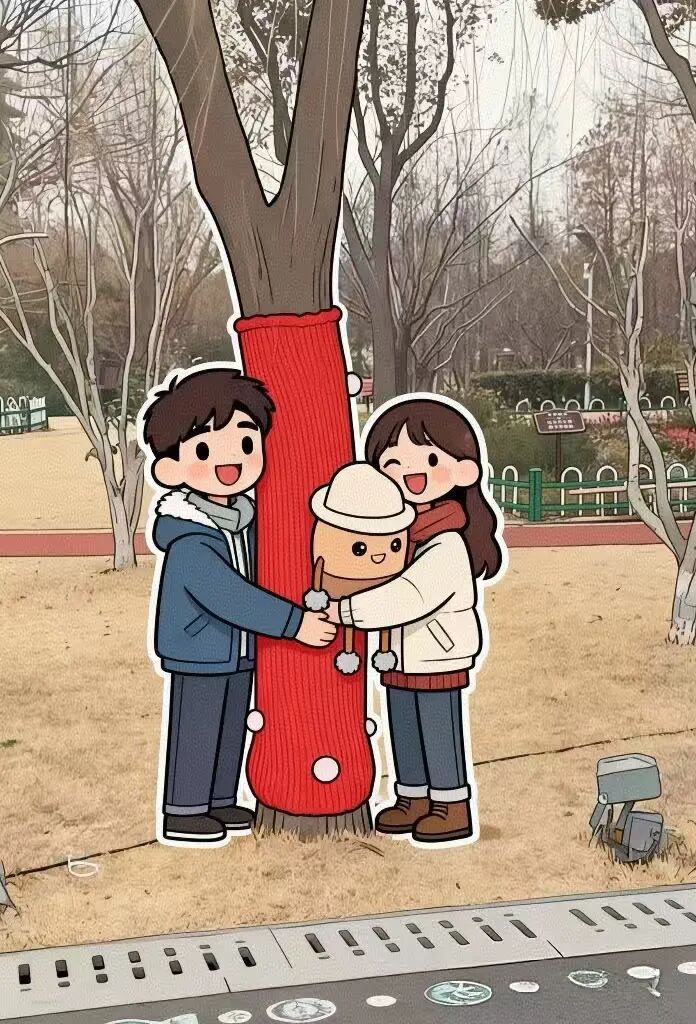 漫步滨江,遇见裹着彩色毛线的“抱抱树”,不妨张开双臂抱一抱它,把心里的悄悄话说给它听。