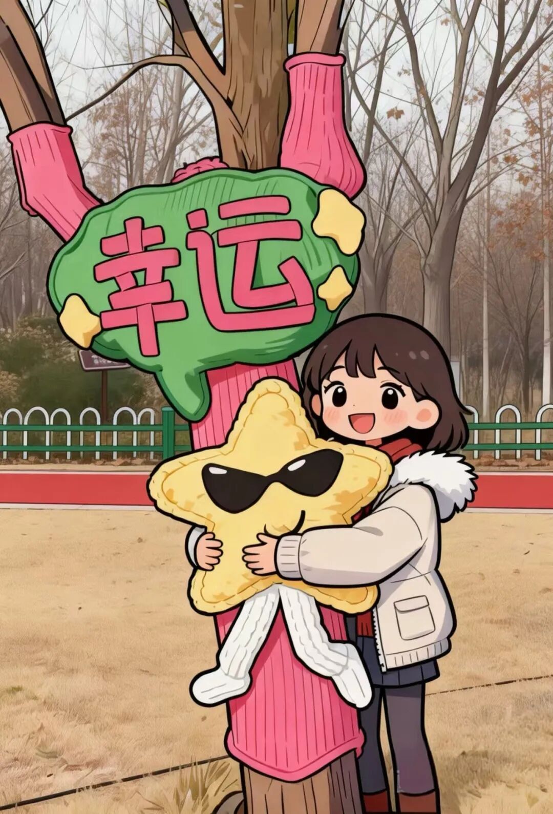 在“抱抱树”等点位留下温暖合影
