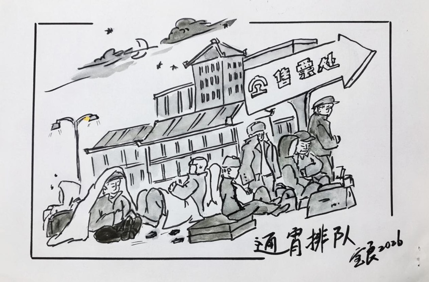 要回家过年的朋友,迭张火车票最紧张。有的单位会帮职工买票还好,没人帮忙的就常常要自己到买票地方通宵排队,看看坐在露天过夜相当辛苦。有辰光还不一定买得到对路的火车票。后来虽有网上买票,但农民工不会智能的玩意儿,还是去通宵排队呀。