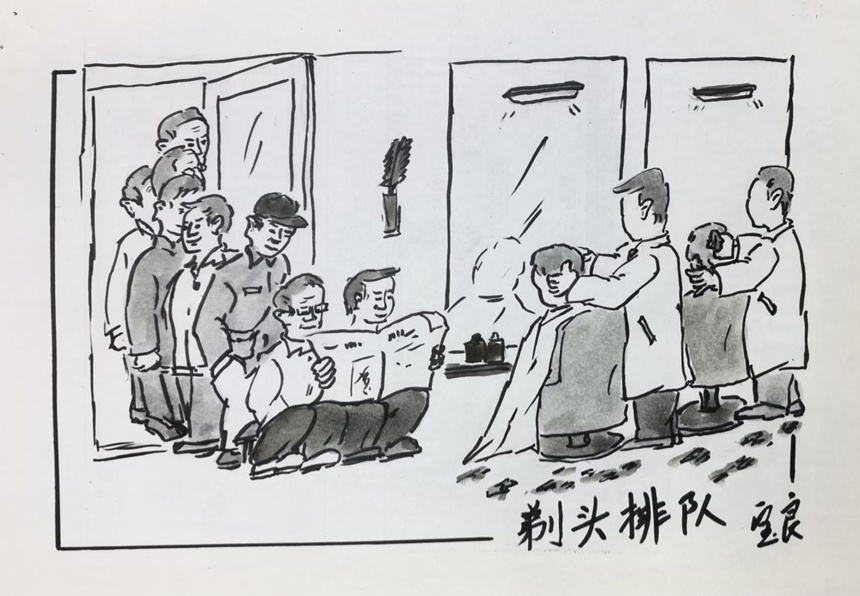 汏浴前头发总要理一理,乃么剃头店人多了。剃头排队又是一道闹猛的风景线,原来剃头一会的工夫,这下有的等唻。有人索性看看报纸,讲讲大道消磨辰光。