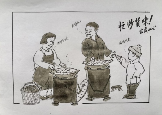 忙炒货也是我们小时候过年时的乐趣。瓜子都是平常吃西瓜、南瓜后积攒起来洗净、晒干存放的,花生是配给或老家亲戚送的,都是当作宝货唻。炒好待凉后,放到过年时招待亲朋好友。孩子们只好在的时候讨点吃吃。