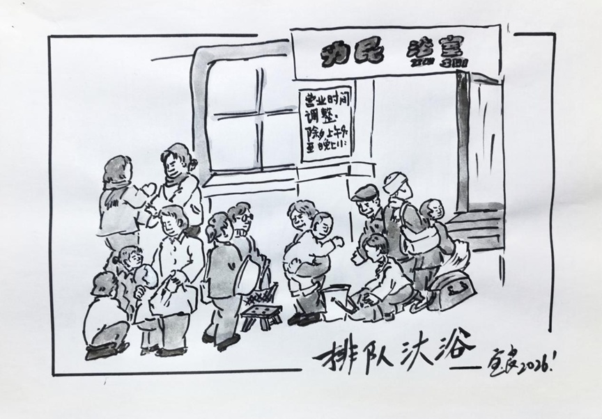 现在家庭生活条件大大改善了,就说汏浴吧,家家都有卫生间,可老早大多数人家的家里是没浴室的,清清爽爽过年都要汏浴,那么就要到浴室里。一般人都在年前几天汏,大家集中在那几天,就要排队汏浴了,成了春节前一道风景线。男人家头发短,操弄方便,相对排队时间不长。而女人家拖儿带女去浴室,洗盆浴价钱贵,一般就洗淋浴,人多就得带上大一点脸盆,这样一家人淋浴、和着脸盆轮流洗,所以女子浴室排队更长。尽管浴室在春节前调整营业时间(平常浴室下午1时开门营业),提前到上午,晚上还延迟些,大家为了赶早都想排在前面些,不少人吃了早饭就去了等开门,可还是人多啊。甚至吃中饭还得轮换,路远的干脆不吃了。现在想起来简直不思议啊。