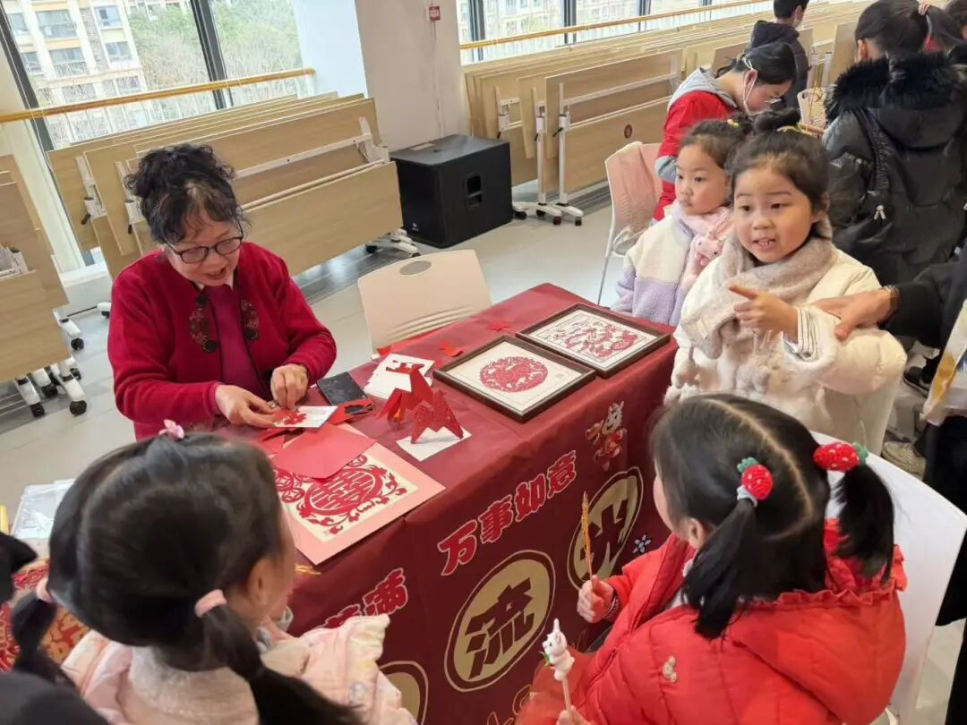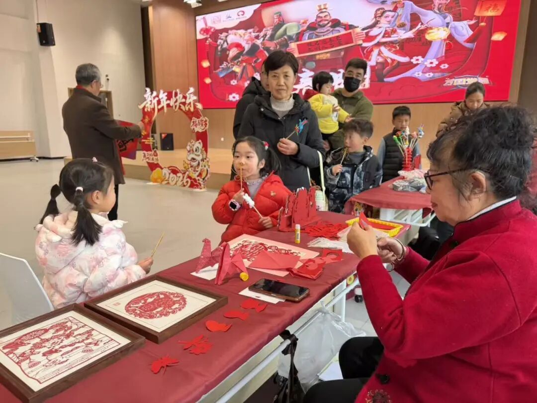 活动现场,写春联、吃糖人、剪纸等传统活动齐上阵,年味十足。小朋友们拿着糖人,眼睛直勾勾地盯着,吃得津津有味。非遗代表性传承人手中的剪刀上下翻飞,不一会儿,精美的剪纸作品就诞生了,引得大家纷纷称赞。