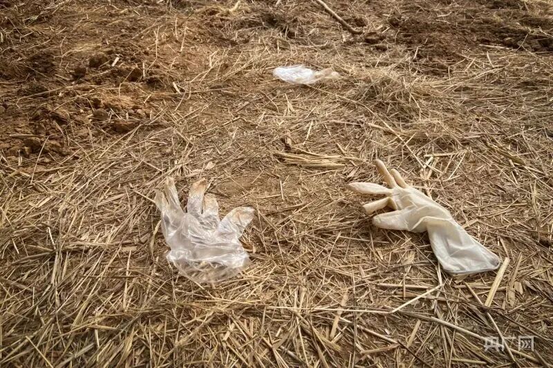 案发现场散落着一次性手套和橡胶手套