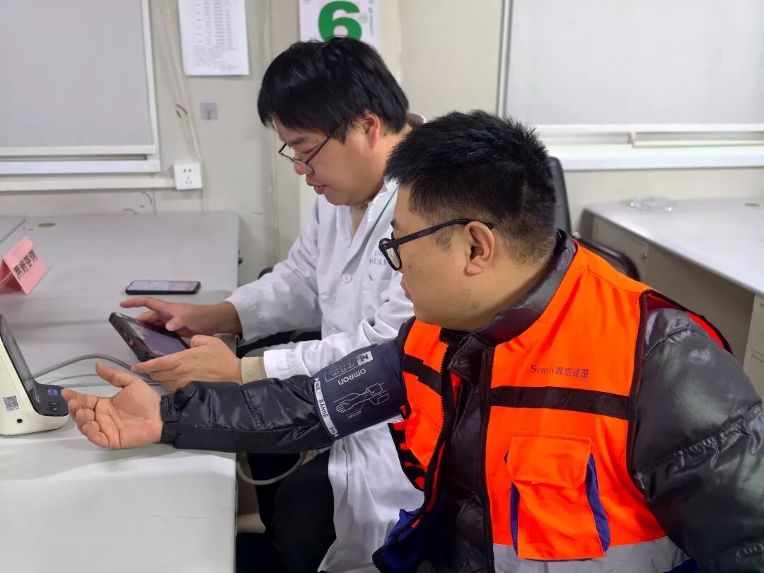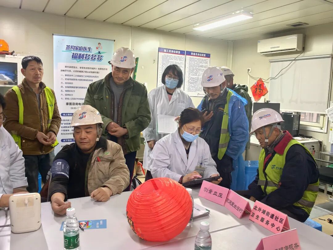 “网格服务”进工地活动同步开展。北外滩街道社区卫生服务中心牵头搭建便民服务台,现场提供测量血糖、康复理疗、用药咨询、中医健康服务等近十项健康服务,医护人员耐心为工友们问诊把脉、讲解健康知识。