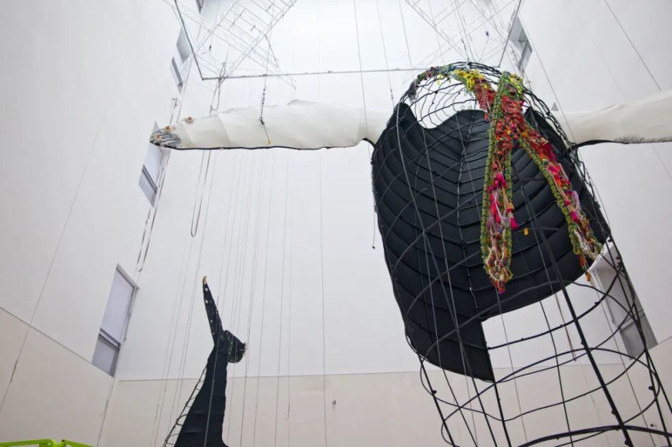 “卡罗莱娜·凯塞多:鲸鱼的致敬”艺术装置展正在紧锣密鼓地布展中,将于2月12日在高约34米的中央展厅内展开全球首展。