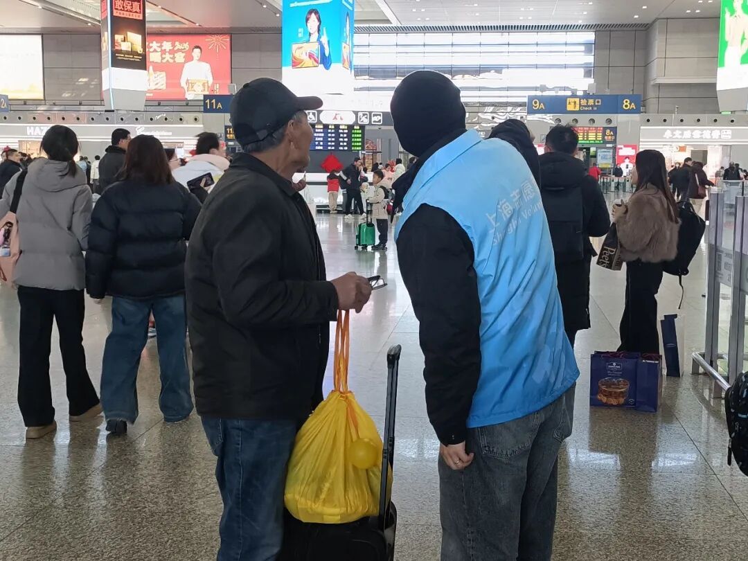 2月2日,2026年铁路春运正式拉开帷幕。闵行区积极开展“家的温暖在上海”温暖春运志愿服务项目,迅速组织发动起一支由区级机关、各街镇机关、社区等多方力量构成的志愿者队伍,奔赴上海虹桥枢纽开启暖心志愿服务。 清晨集结:带着热忱,奔赴“责任阵地” 早晨,虹桥火车站还未被峰值人流填满,江川路街道的志愿者们已经踏着轻快的步伐集结到位。大家三三两两交流着服务心得,话语里满是对即将到来的忙碌的憧憬。 “你们这脚步也太快了,我都快跟不上啦,难道是以前来过不成?”本次活动的组织老师笑着追上前打趣。几位志愿者立刻朗声回应:“这都是第二次上岗啦!早就把车站动线摸熟了,就盼着能早点帮到大家!”简单的对话里,藏着的是对志愿服务的满腔热忱,更是对旅客需求的真切牵挂。 话音刚落,志愿者们便迅速分散到各个服务点位,各自“镇守”一方——有的扎根在人流密集的过道,有的守在检票口旁,有的主动前往候车区巡逻,用最快的速度进入了“战斗状态”。 暖心瞬间:小事见真章,善意暖人心 热点续航,解燃眉之急 来自江川文化馆的志愿者华强,一上岗就有了自己的“小算盘”——他主动选择了商务座候车区与检票口之间的过道作为服务点。“这里位置显眼,旅客找起来方便,人流也密,能帮到更多人。” 果然,没过多久,一位女士就面带焦急地朝着他走来:“您好,能借个热点吗?我手机流量突然不够用了,有急事要处理,实在没办法了!”华强没有丝毫犹豫,立刻爽快答应:“没问题,你连吧,慢慢弄不急!”一边说着,一边熟练地打开热点,还在一旁静静等候,直到女士顺利处理完事务。 “太谢谢你了!不然我真不知道该怎么办了!”女士再三道谢,脚步轻快地奔向检票口。那句真诚的感谢,像一缕春日暖阳,让华强和身边的志愿者们心里都暖暖的。 细心指引,护长者安心 上午十点,站厅里的人流越来越密,脚步声、行李滚轮声、广播提示声交织在一起。一位头发花白的伯伯,在人群中渐渐放慢了脚步,眼神里满是迟疑,双手紧紧攥着手机,几番张望后,径直朝着志愿者吴潇彬的方向走来。 “小伙子,麻烦你帮我看看呗?车票是家里孩子代买的,我手机里只有个截图,实在找不到检票口了。”伯伯的语气里带着几分无助。吴潇彬连忙接过手机,指尖轻轻滑动屏幕,仔细核对车次、时间和检票信息,很快就找到了对应的检票口。 他特意侧身站到伯伯身边,伸出手指明方向,还反复叮嘱:“伯伯,您沿着这个通道一直往前走,到前面那个电子屏再确认一下车次,千万别走错啦!要是记不住,到时候再问工作人员也成!”伯伯脸上瞬间绽开了感激的笑容,连连说着“谢谢小伙子,太麻烦你了”,脚步稳稳地朝着检票口走去,背影里满是踏实与安心。 急中生智,助旅客赶车 “志愿者同志,求求你帮我看看!马上就要停止检票了,我找不到检票口了!”一阵急促的脚步声传来,一位女士神色慌张地跑到志愿者蔡鹏宇面前,手里的车票都快攥皱了。 蔡鹏宇立刻接过车票,目光快速扫过票面信息,心里咯噔一下——车票上的检票口是3A,和自己负责的点位数字一致,但出发站却是上海南站,并非当前的虹桥站! “您别慌!赶紧去咨询台问问,看看能不能改签或者协调其他方案,还来得及!”女士顺着他指的方向一看,连声道谢后转身就往咨询台跑。看着她匆忙却坚定的背影,蔡鹏宇和周围的志愿者们也暗暗为她捏了把汗,真心期盼她能顺利赶上列车。 微光汇聚:平凡举动,温暖一座城 车站里人来人往,步履匆匆。有人找不到检票口,有人不会操作自助机,有人行李太重搬不动,有人手机没网犯了难……每一次驻足咨询,都藏着一份迫切的需求;每一次耐心回应,都传递着一份温暖的力量。 志愿者们做的,或许都是些微不足道的小事:一次热点分享、一句路线指引、一个紧急建议、一把行李帮扶。但正是这些看似平凡的举动,像点点微光,在人潮中汇聚成一股暖流,化解了旅客的燃眉之急,也让漫长的归途多了一份顺畅与安心。