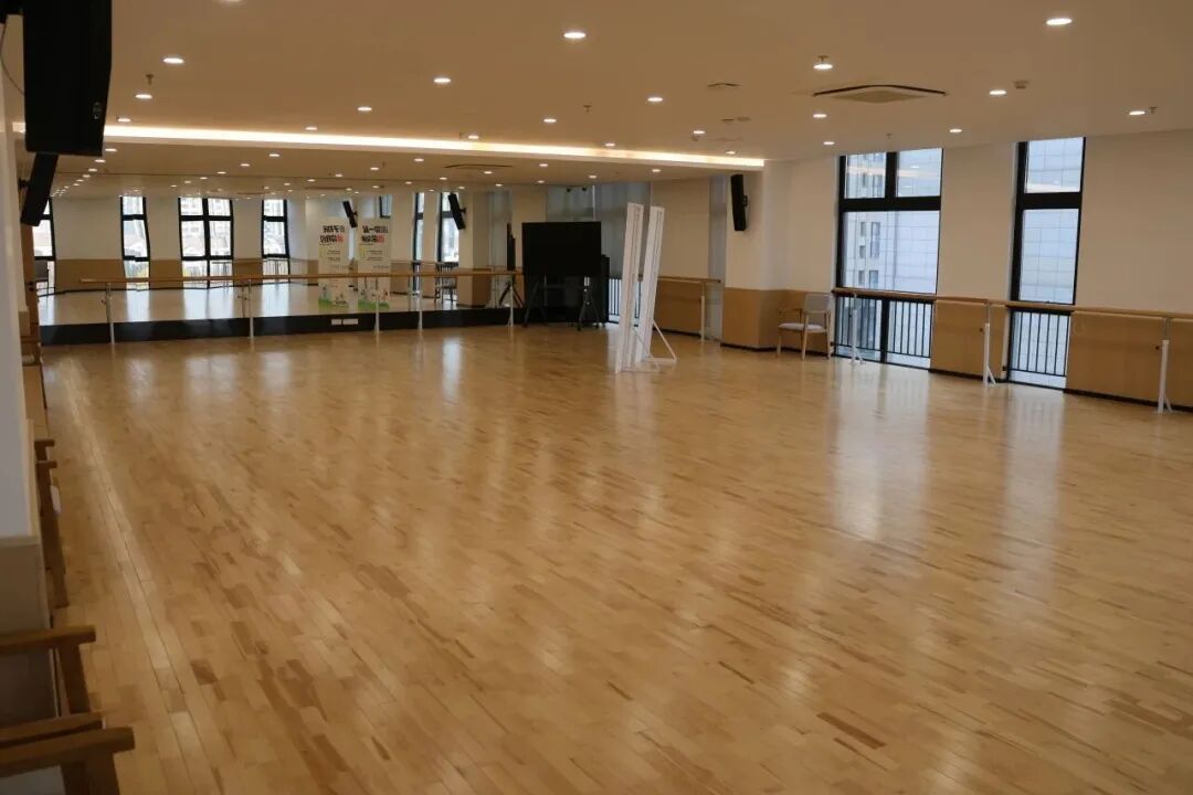 位于D座四楼,室内面积178㎡,铺设专业防滑木地板,搭配整面高清全身镜与标准舞蹈把杆,辅以音质清晰的专业音响设备,全方位满足古典舞、现代舞、广场舞等各类舞蹈练习及文艺排练需求,既适合个人日常练舞塑形,也可承接小型舞蹈团体活动。