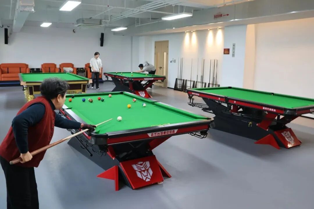 位于D座四楼,室内面积138㎡,配备1张标准斯诺克球台与3张普通桌球台,红黑配色的桌架兼具颜值与质感,开阔明亮的环境搭配舒适的休息区,为爱好者提供优质的运动与休闲体验。