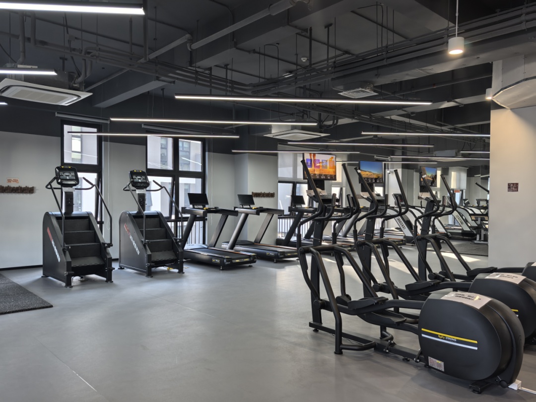 位于D座四楼,室内面积478㎡,配备30多件不同类型的健身器材,满足不同人群的健身需求。力量器械区备有史密斯、大飞鸟、助力单双杠训练器等13种专业的综合训练设备。有氧及自由力量区备有跑步机、椭圆机、磁控单车等多种有氧器械。辅助器械区备有全套哑铃、多功能哑铃凳、推肩凳,能够满足市民多样化的力量训练。