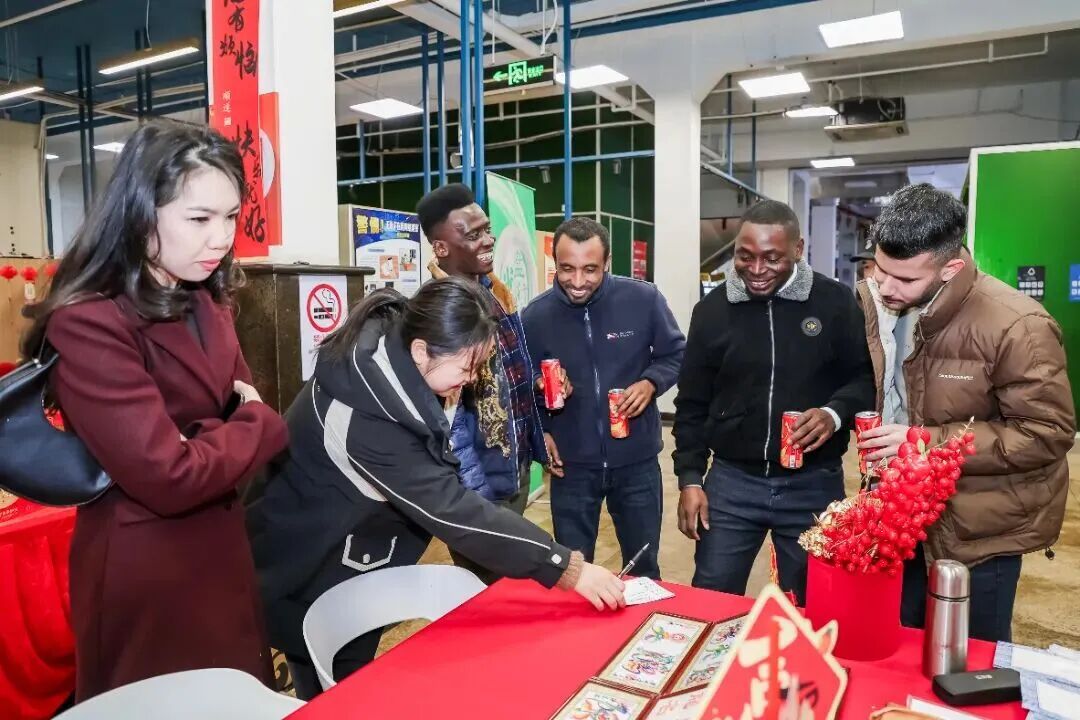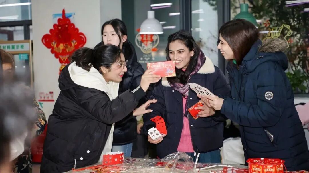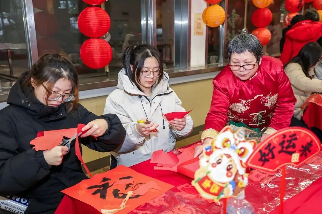 现场红灯笼高挂,福字点缀,猜灯谜,做窗花、投壶、写春联等经典项目依次铺开,不少国际生也主动加入,探寻中国春节的文化底蕴,现场处处洋溢着团圆祥和的节日气息。