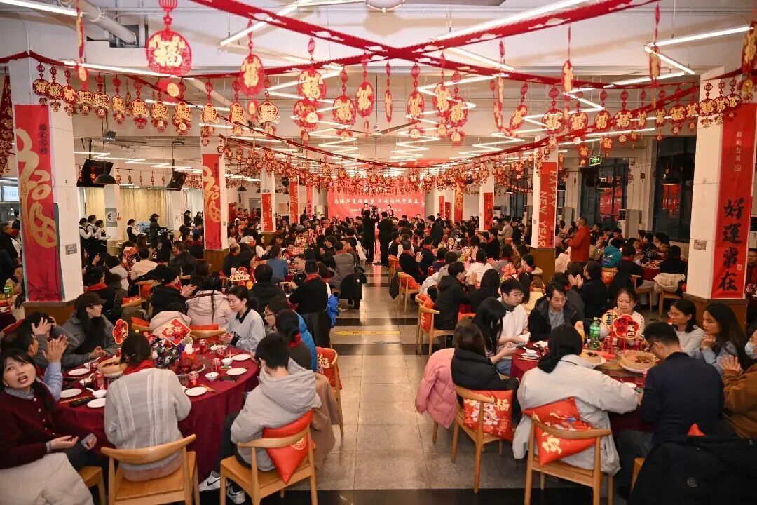 在同济大学校园里,民俗游园会、美味团圆宴系列活动精彩纷呈,活动在四平路校区学苑饮食广场二楼举行,300名中外留校学生代表与老师们欢聚一堂,共赴团圆之约,同贺马年新春。