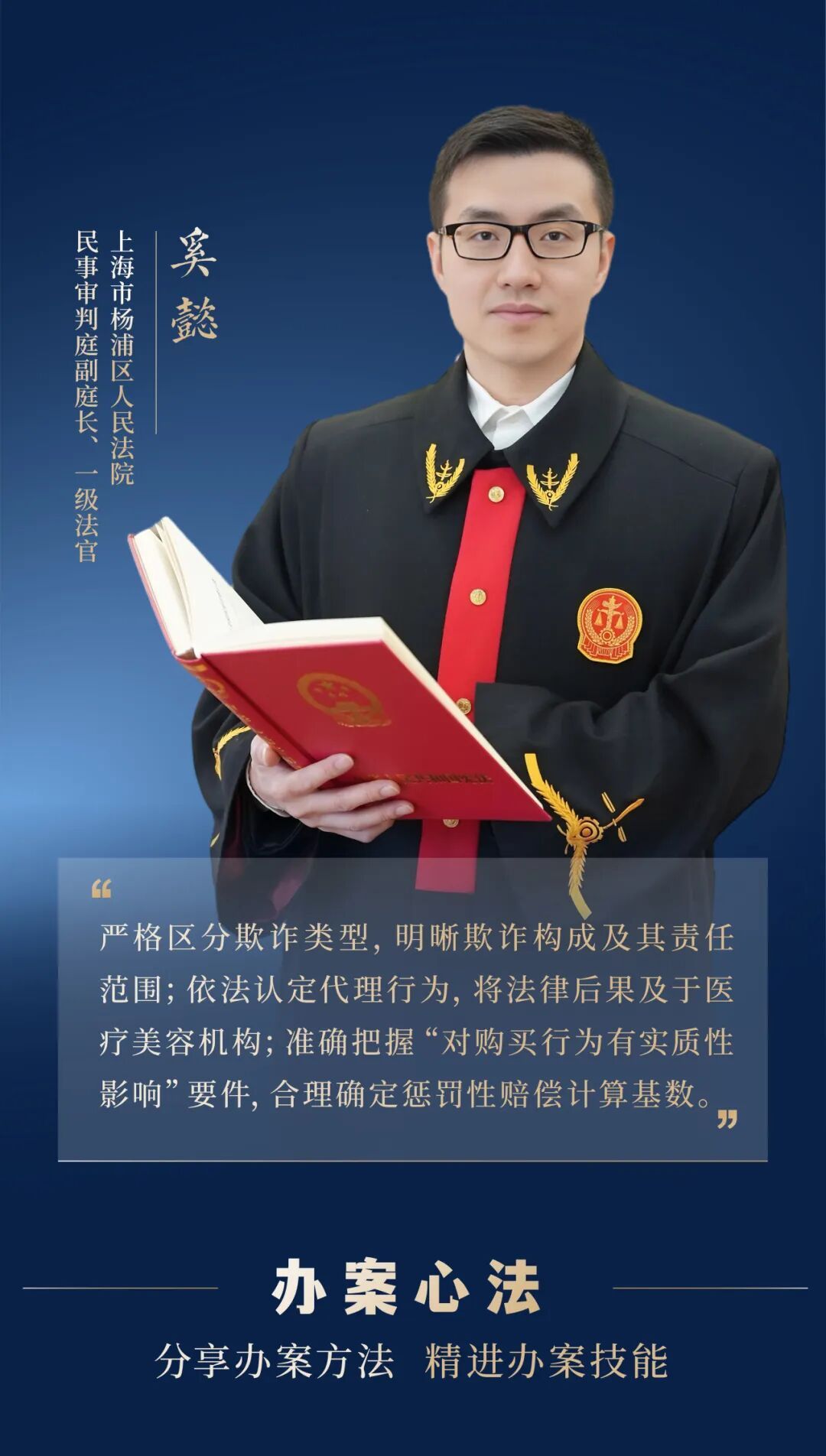 本期“办案心法”栏目“上海法院审判业务骨干”特别专题,邀请上海法院审判业务骨干,上海市杨浦区人民法院民事审判庭副庭长、一级法官——奚懿为我们分享医疗美容欺诈行为及责任的司法认定要点。