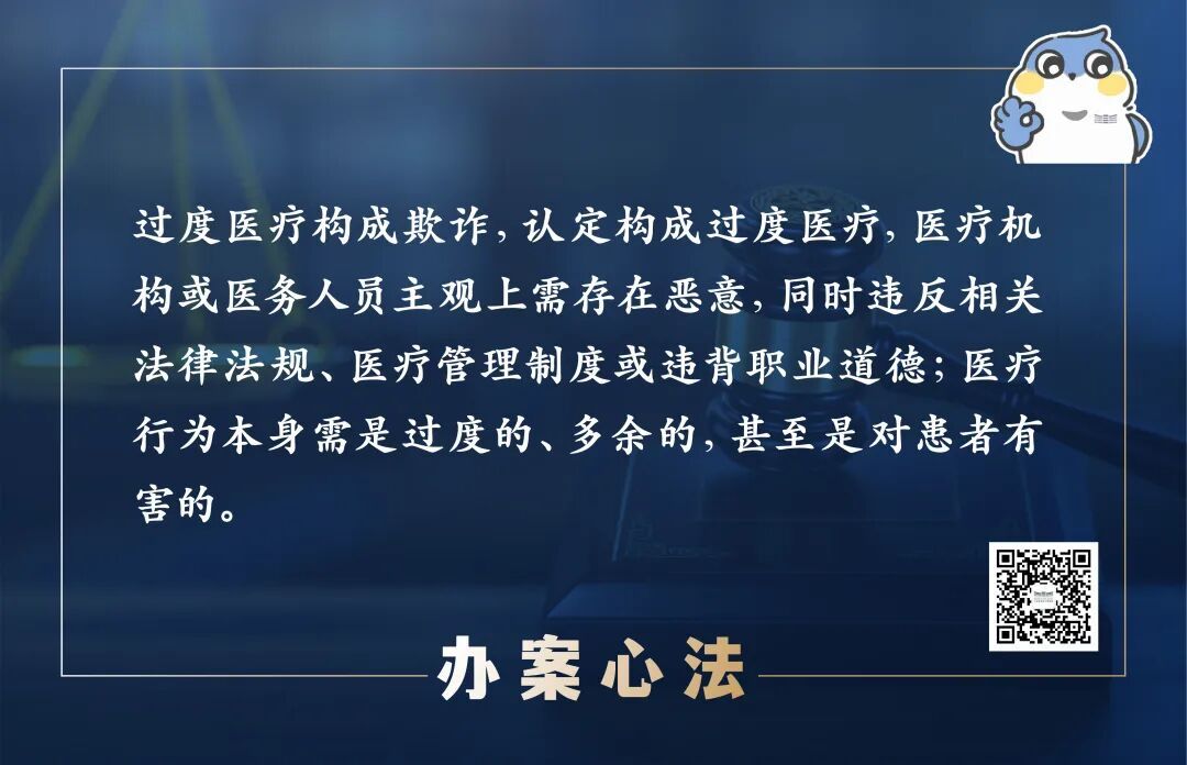 过度治疗,也称为过度医疗行为,是指医方在诊疗活动中,违反法律规定的义务或与当事人约定的义务,为患者提供远超治疗疾病所需的医疗服务,从而导致患者财产损失及人身损害的行为。虚构或夸大患者病情,为患者提供不必要的诊疗行为,进行过度医疗将构成欺诈。认定构成过度医疗,医疗机构或医务人员主观上需存在恶意,同时也违反了相关法律法规、医疗管理制度的要求,违背了作为医务人员的职业道德;医疗行为本身需是过度的、多余的,甚至是对患者有害的。其表现为诱导消费者做不必要的手术或购买不必要的药物、仪器,增加消费者开支。2025年3月15日,最高人民检察院与中国消费者协会联合发布了一批消费者权益保护公益诉讼典型案例,其中一个案件中,黄石某医院对125份病历中113份存在无手术指征的患者强行手术,谋取不法利益17万元,构成了典型的过度医疗。检察机关据此提起公益诉讼,法院最终以黄石某医院存在“欺诈”定性该过度医疗行为,从而支持了惩罚性赔偿。