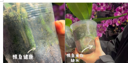 透过花盆观察,根系呈银白色或浅绿色,粗壮饱满、缠绕紧密,无发黑、腐烂、空心的情况(黑色烂根会影响吸收,易导致植株枯萎)。