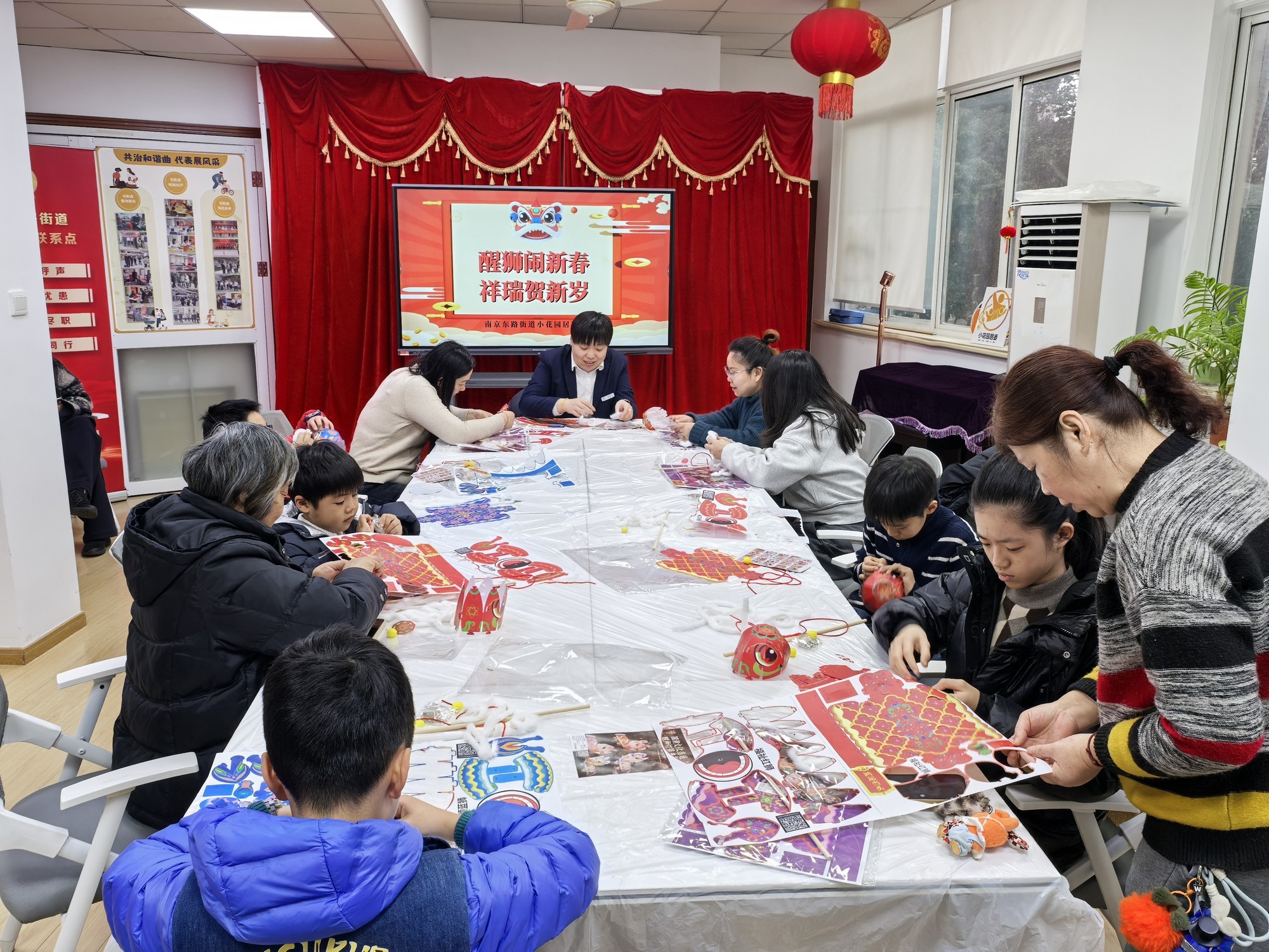 近日,南京东路街道的两个社区同时热闹了起来。厦门路居委和小花园居委在同一天组织亲子家庭动手制作醒狮灯笼,让孩子们在创作、交流和合作中提前感受春节的热络气息。围坐在桌前的孩子们,忙不迭地剪纸、贴饰、拼装、点灯,轻松氛围里,尝试着把久违的“年味”一点点找了回来。
