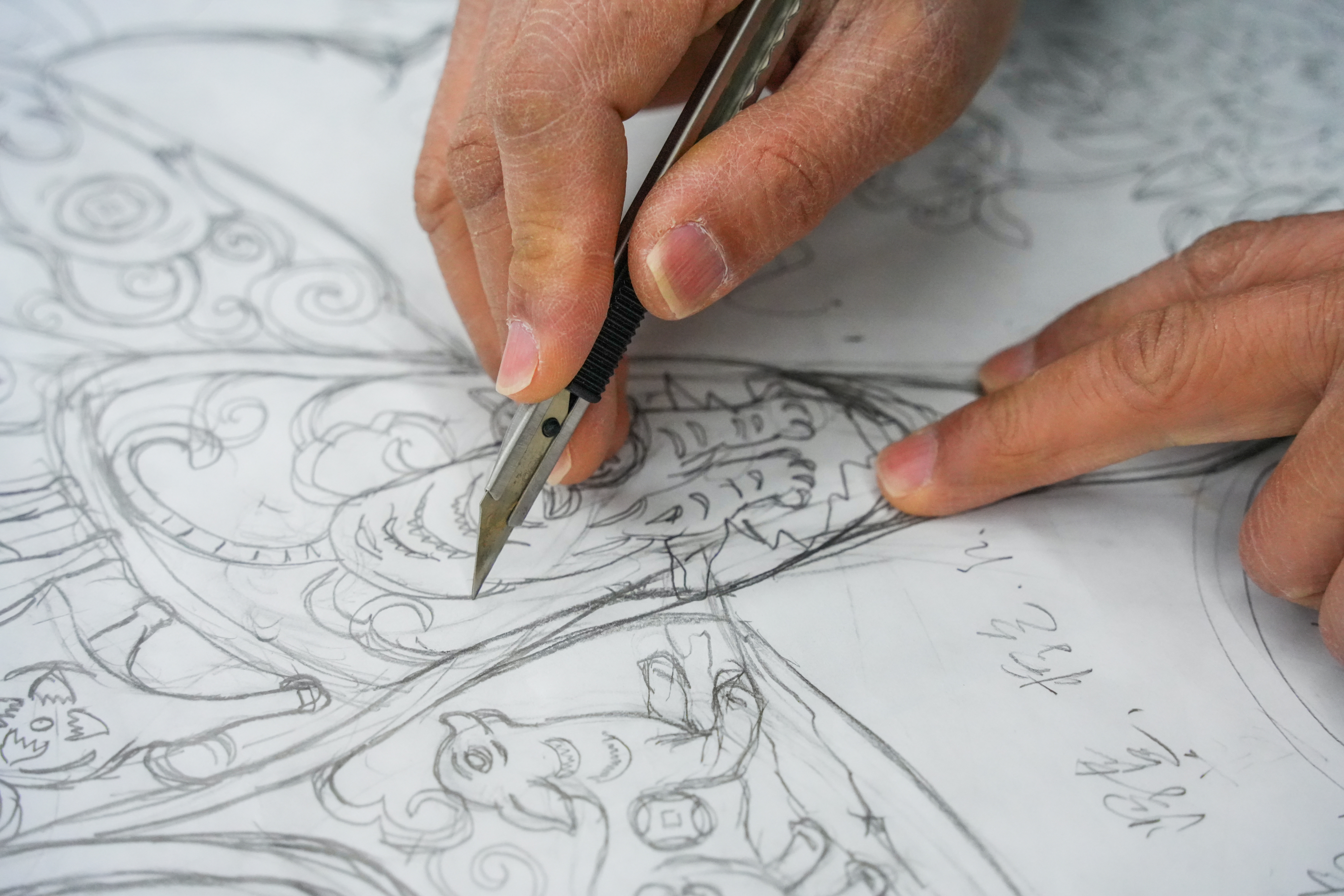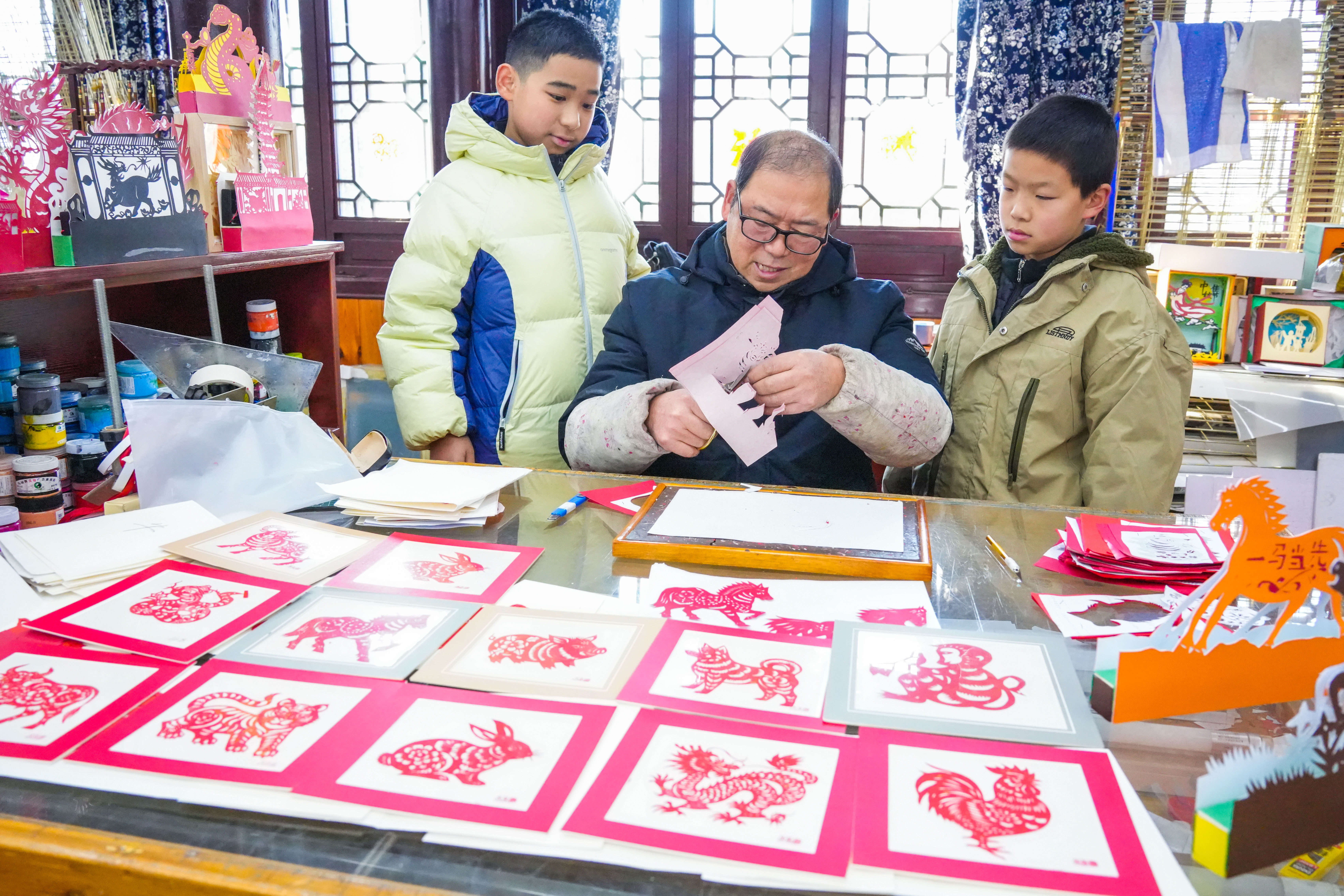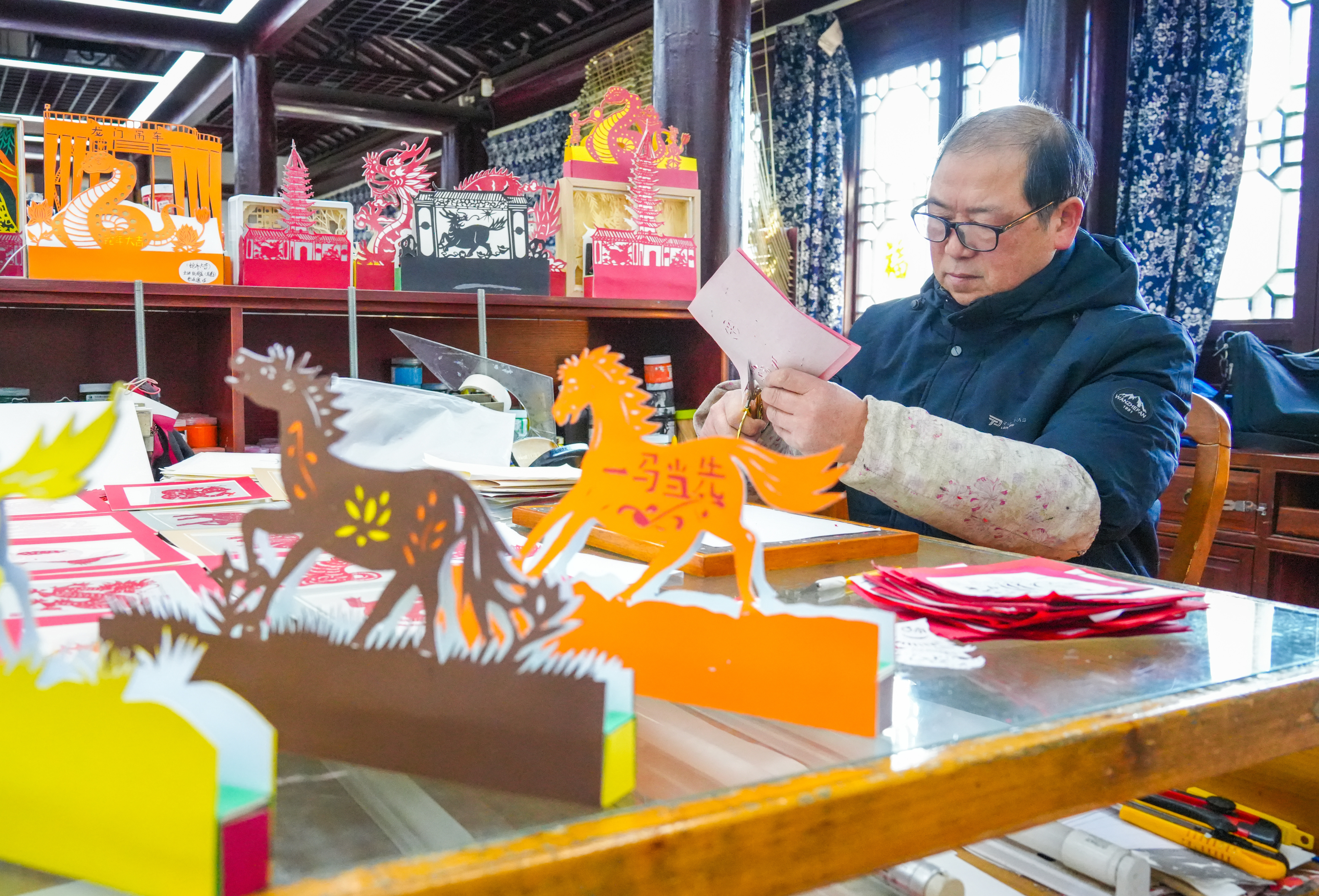 2月9日,上海车墩版画美术馆内,非物质文化遗产代表性传承人正专注创作马年主题剪纸,“骏马奔腾”“龙马精神”等纹样精致呈现纸上。从起稿、刻制到成品,指尖流转的匠心将传统年味与非遗魅力融为一体,为新春增添了一抹独特的文化暖意。 记者 蔡斌 摄
