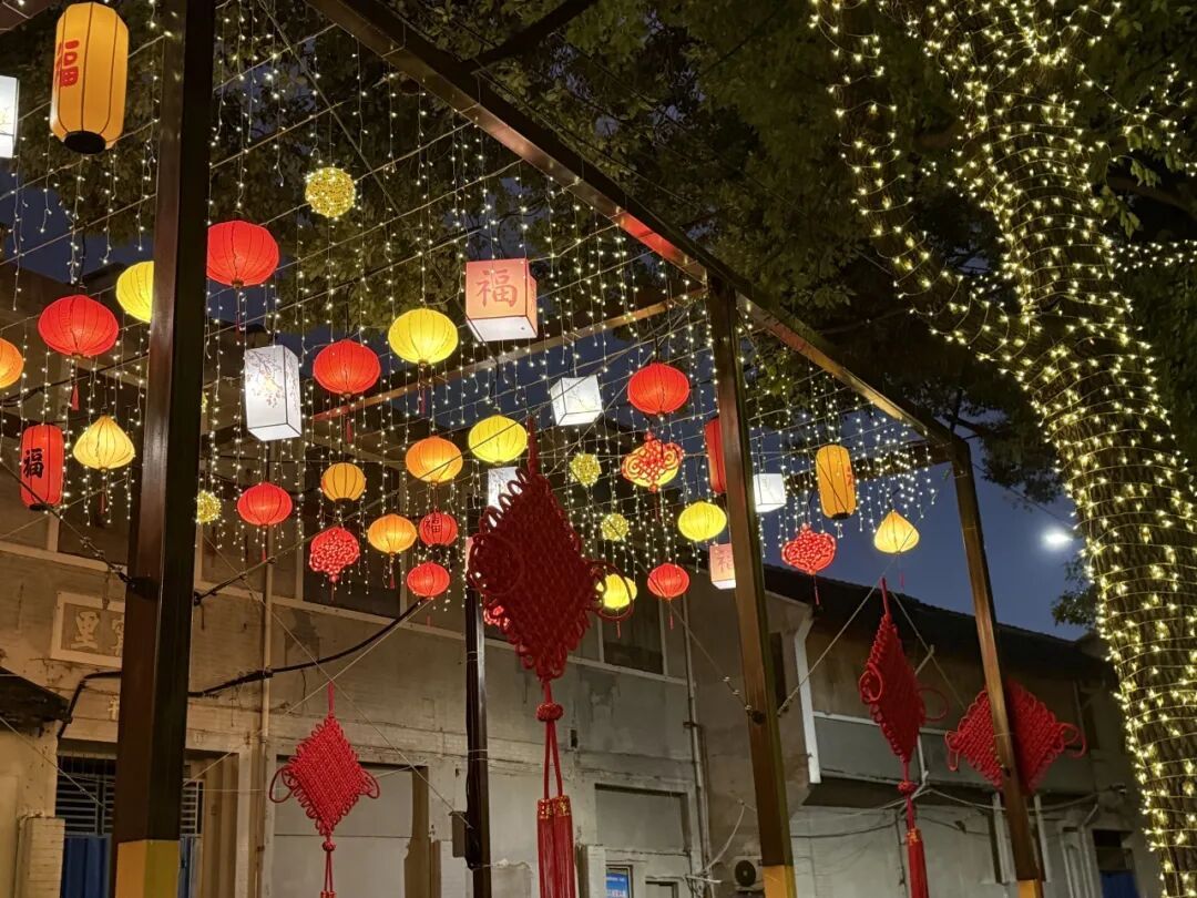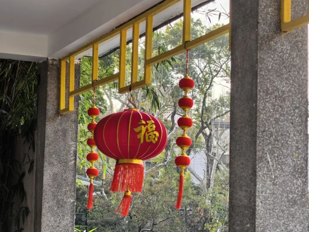 火红喜庆的中国结迎风飘扬、喜气洋洋的灯笼、鞭炮高高悬挂,辞旧迎新的春联既体现了传统习俗,又渲染出欣欣向荣的节日氛围,为广大市民游客送上新年祝福。
